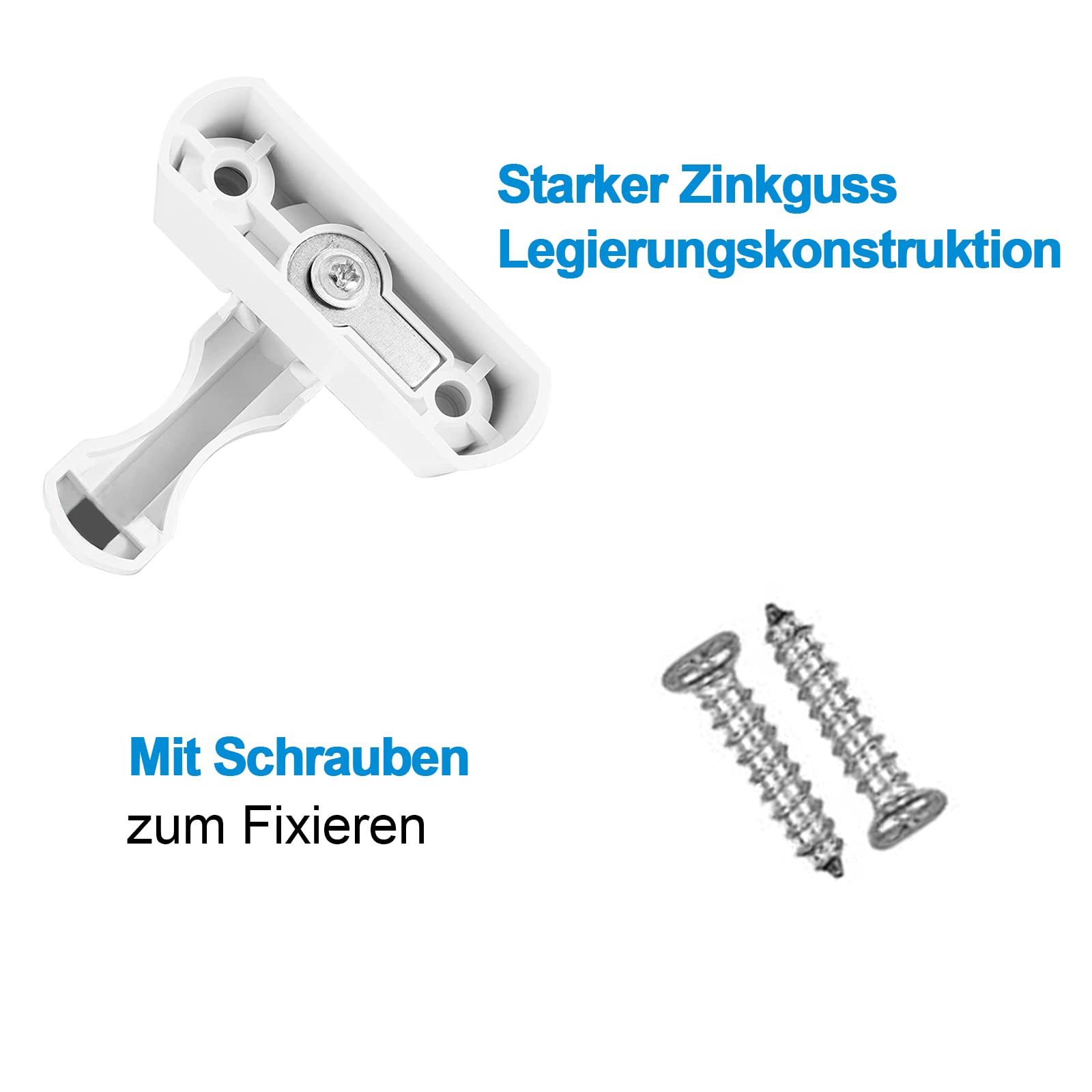 Questi cacciacristalli sono durevoli. Questo Sash Blocker è ideale per la sicurezza domestica. Maggiore sicurezza per le porte o le finestre in PVC/PVC. Struttura in lega robusta:il telaio di sicurezza è realizzato in lega di alluminio di alta qualà, durevole, non facile da indossare.finura verniciata a polvere bianca, un buon abbinamento con l Finestra Sicurezza Cal Doublex XL - Blocco Di Sicurezza Antifurto Per Finestre, Sicurezza Finestra Pvc Facile da montare e facile da usare. Design intelligente: la superficie è rivestita, quindi non c'è rischio di ruggine, nemmeno inumidito dalla pioggia. Serrature ad ala non facile da arrugginire e hanno una vernice bianca, unghie forti, un corpo di blocco spesso. Le serrature per finestre e porte con cuscinetto anti-usura sono adatte a tutti i tipi di porte e finestre e contengono cuscinetti di protezione dall'usura per ridurre l'attrito tra il braccio di bloccaggio e la finestra e proteggere la finestra o la porta dai graffi. Contenuto della confezione: 2 chiavistelli per finestre con 2 cuscinetti anti-usura, 4 viti di montaggio e 4 tappi di copertura per un look accattivante dei fermi.