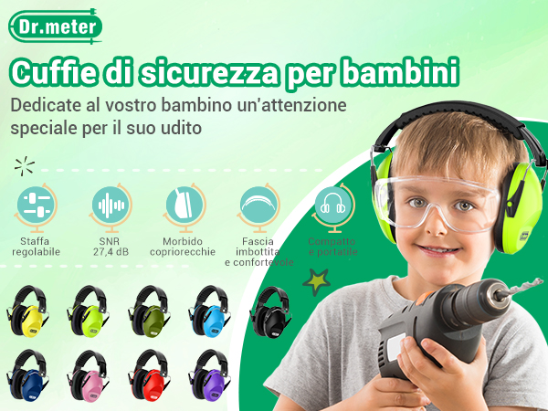 I paraorecchie Meter ad alta riduzione del rumore (27NRR) sono uno dei modi migliori per proteggere l'udito da danni, particolarmente perfetti per i bambini. I supporti metallici su entrambi i lati possono essere facilmente tirati o ritratti per adattarsi a qualsiasi dimensione della testa, garantendo una vestibilità comoda e sicura per ogni bambino. I vostri piccoli potranno indossarli per ore e ore senza sentirsi compressi, bloccando efficacemente i rumori più forti. Particolarmente dimensionato e progettato per neonati e bambini. Caratteristiche: capacità di riduzione del rumore 27NRR - Fascia regolabile per adattarsi a tutte le dimensioni della testa. Con un design adorabile, questi paraorecchie non solo stimolano i bambini a indossarli volentieri, ma garantiscono anche la completa sicurezza delle orecchie. Comodo da indossare e regolabile in morbida pelle PU si adatta a tutte le dimensioni della testa, il cuscinetto imbottito offre una vestibilità comoda e una maggiore capacità di blocco del rumore. Meter sono la soluzione perfetta per le esigenze di protezione dell'udito del vostro bambino. Inoltre, questi cuffie antirumore bambini sono certificati e pienamente conformi ai severi standard ANSI S3.19-1974 e CE EN 352-1 per la riduzione del rumore. 【Comodi e sicuri】Realizzati con interni in spugna ad alta densità e avvolte da esterni in pelle PU premium, questi cuffie antirumore bambini offrono una vestibilità aderente senza causare alcun disagio. tutte le dimensioni della testa - 3 Coppa paraorecchie girevole a 60 - Cuscino auricolare in pelle PU imbottito con schiuma morbida - rilascia la pressione del rumore, recupera il mondo tranquillo Manutenzione e pulizia - solo la superficie del paraorecchie può essere pulita. Meter sono qui per aiutarvi! Se esposti a questi Decibel per periodi di tempo più lunghi, gli effetti sono ancora peggiori. Il nostro dr. Contenuto della confezione: 1 paraorecchie protettivo per bambini Dr.meter 1 manuale inglese. Cuffie protettive per bambini con cuffie antirumore per bambini Cuffie per dormire studiare sparare Fascia per la testa dei bambini regolabile 27SNR 【Archetto regolabile】Con l'archetto regolabile Dr. meter sono una scelta eccellente per proteggere il bambino in una vasta gamma di eventi e situazioni rumorose ideali per dormire, studiare, sparare I rumori forti possono causare perdita permanente dell'udito e persino accelerare il processo di sordità. Cuffie Antirumore Lavoro Cuffie Auricolari Bambini, Dr.meter Cuffie Protettive Per Bambini Con Cuffie Antirumore Bambini 【Piccole orecchie, grande protezione】Siete preoccupati per l'udito del vostro piccolo in ambienti rumorosi? Siete stanchi di convincerli a indossare una protezione per le orecchie? I cuffie antirumore bambini per bambini Dr. Pulire con sapone neutro e acqua tiepida. Questi cuffie antirumore bambini leggeri sono inoltre dotati di padiglioni auricolari girevoli a 360°, che li rendono facili da riporre e trasportare. Struttura pieghevole a 360 tazze girevoli, tutto il corpo può essere piegato in dimensioni molto compatte, leggero e portatile ovunque. Paraorecchie Dr. Meter potete dire addio ai paraorecchie che non si adattano alla vostra testa.