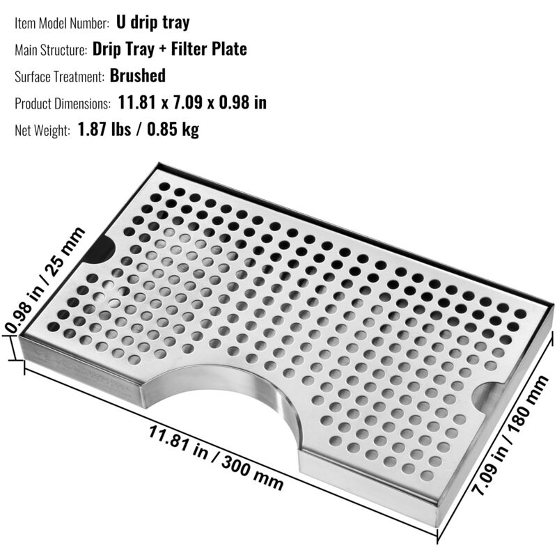 VERSATILE E CONVENIENTE: Perfetto per torri di birra a rubinetto singolo o doppio, il nostro vassoio antigoccia da bar da 300 x 177 mm è abbastanza spazioso da contenere due bicchieri da birra. Rimovibile per una facile pulizia: dotato di coperchio rimovibile, la pulizia è un gioco da ragazzi. FORTE E SICURO: nessun versamento, nessun problema: il vassoio raccogligocce per birra VEVOR cattura efficacemente le gocce del rubinetto e il liquido in eccesso per un piano di lavoro pulito. I fori cavi uniformi della nostra vaschetta raccogligocce garantiscono un drenaggio regolare, prevenendo l'accumulo di acqua. Si adatta alla maggior parte delle colonne di birra alla spina singole e doppie, con spazio sufficiente per due bicchieri da birra. Questo vassoio antigoccia è realizzato in 100% acciaio inox . Vassoio antigoccia in acciaio inox spazzolato, con montaggio a superficie, le gocce dello spillatore cadono nella vaschetta e non sporcano la superficie. Facile da pulire Non è richiesto alcun montaggio o installazione: è sufficiente posizionarlo sul tavolo, assicurandosi che sia più basso del rubinetto della birra. Realizzato in acciaio inossidabile per uso alimentare e dispone di un coperchio rimovibile per una facile pulizia. Ideale per bar, ristoranti, bar domestici, cucine e altro ancora. Senza fori di drenaggio nella parte inferiore, è sufficiente svuotare il vassoio raccogligocce e risciacquare con acqua. Semplifica la pulizia con il vassoio raccogligocce con superficie lucida VEVOR! Realizzato in acciaio inossidabile di alta qualità, il nostro scolatoio a colonna per birra è costruito per durare. Apillatore Birra VEVOR Beer Drip Tray Vassoio Raccogligocce Per Spillatore Di Birra, Stainless Steel, Argento Vassoio Antiscivolo Puoi anche posizionare il vassoio di raccolta della birra nel lavandino o nella lavastoviglie per una pulizia approfondita. La rete uniformemente distribuita della nostra vaschetta raccogligocce garantisce un drenaggio rapido, anche se esposto a liquidi ad alta o bassa temperatura. Rete uniforme per un drenaggio rapido: dì addio ai fastidiosi ristagni di liquidi!