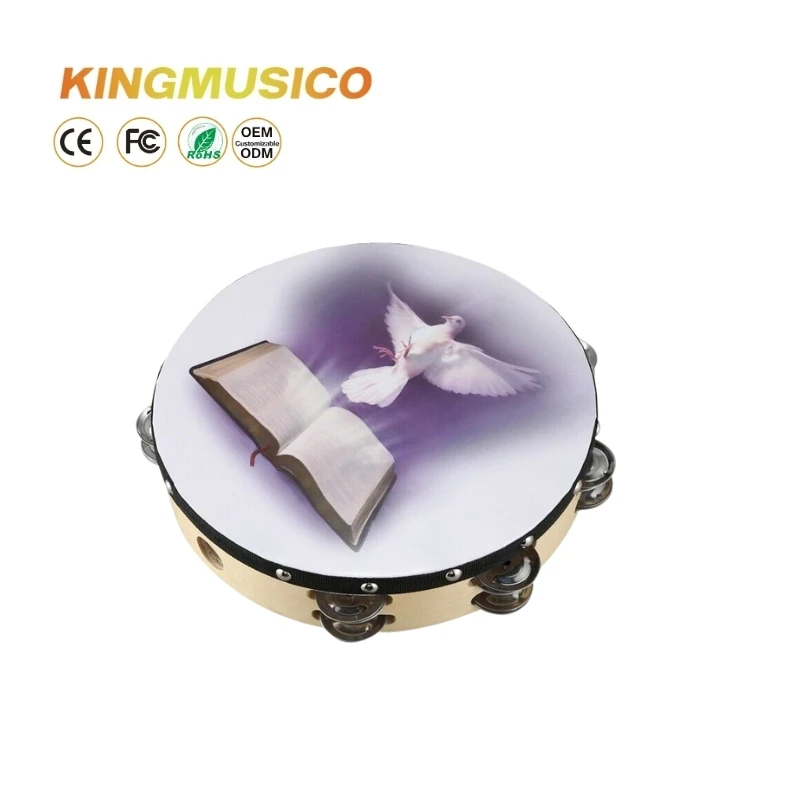 10" Tambourine Double Row Tambourine Handbell Hand Drum Wooden Tambourine For Adults For Parties Percussion Musical Instrument