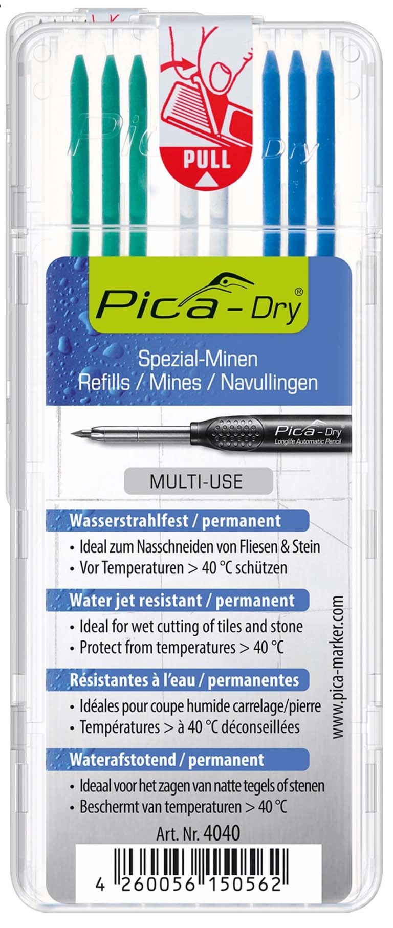 La confezione contiene mine resistente contro i getti d'acqua I sistemi di firmatura coprono quasi tutte le possibilità di applicazione e sono adatti sia per hobby che per professionisti. Lyra Dry Leads Grafite 2B - Mine Di Ricambio Universali Rotonde Lyra Dry 4499102 LYRA DRY LEADS - Mine di ricarica per marcatori edili, 2,8 x 100 mm Grazie al caricatore infrangibile, le mine non possono essere danneggiate o spezzate su tutte le superfici come metallo, legno, plastica, piastrelle, gomma e molti altri tipi di etichettatura su superfici chiare o scure, solubile in acqua o Marcatura, linee fini o linee grossolane, appositamente progettato per soddisfare le esigenze di diversi gruppi di artigiani come falegnami, installatori, piastrellisti, giardinieri e paesaggistici, ecc. Su LYRA la fabbrica di matite Lyra Johann Froescheis è da oltre 100 anni considerata partner competente nella produzione di prodotti di marcatura e firmati per industria e artigianato. Prodotto adatto per ogni tipo di superficie LYRA Dry Leads Basic - Mine di ricambio universali rotonde, 2,8 x 2,8 x 100 mm, blister, colori assortiti (superfici chiare o scure, solubile in acqua o impermeabile, marcatura fine o grossolana...) Mine facilmente removibili, più comfort e migliore protezione da sporco e umidità Adatto per tutti i comuni marcatori Marcature rimovibili sulle superfici lisce