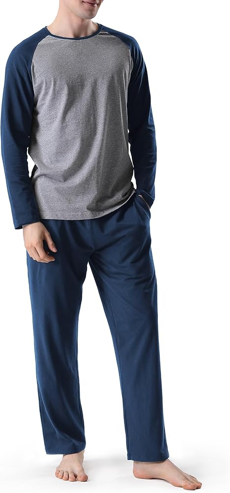 Mymyguoe Pigiama Da Uomo A Due Pezzi E A Maniche Lunghe, In Cotone Pettinato, Morbido, A Maniche Lunghe, Per La Casa, Traspirante, Da Uomo, Comoda Biancheria Da Notte A Quadretti, 01 Blu