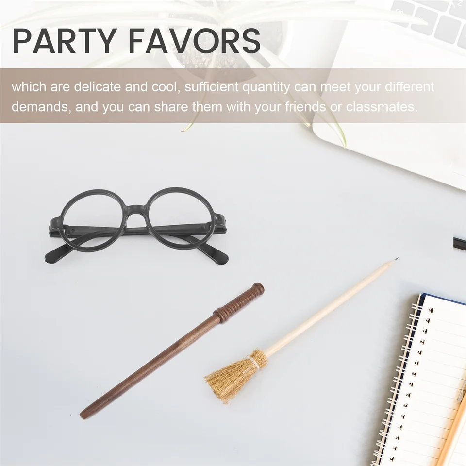 48 Pezzi Di Mate E Bacchette Per Scopa Da Strega Mate E Occhiali Con Montatura Rotonda Senza Lenti, Bacchette Da Mago Fornure Per Feste A Tema
