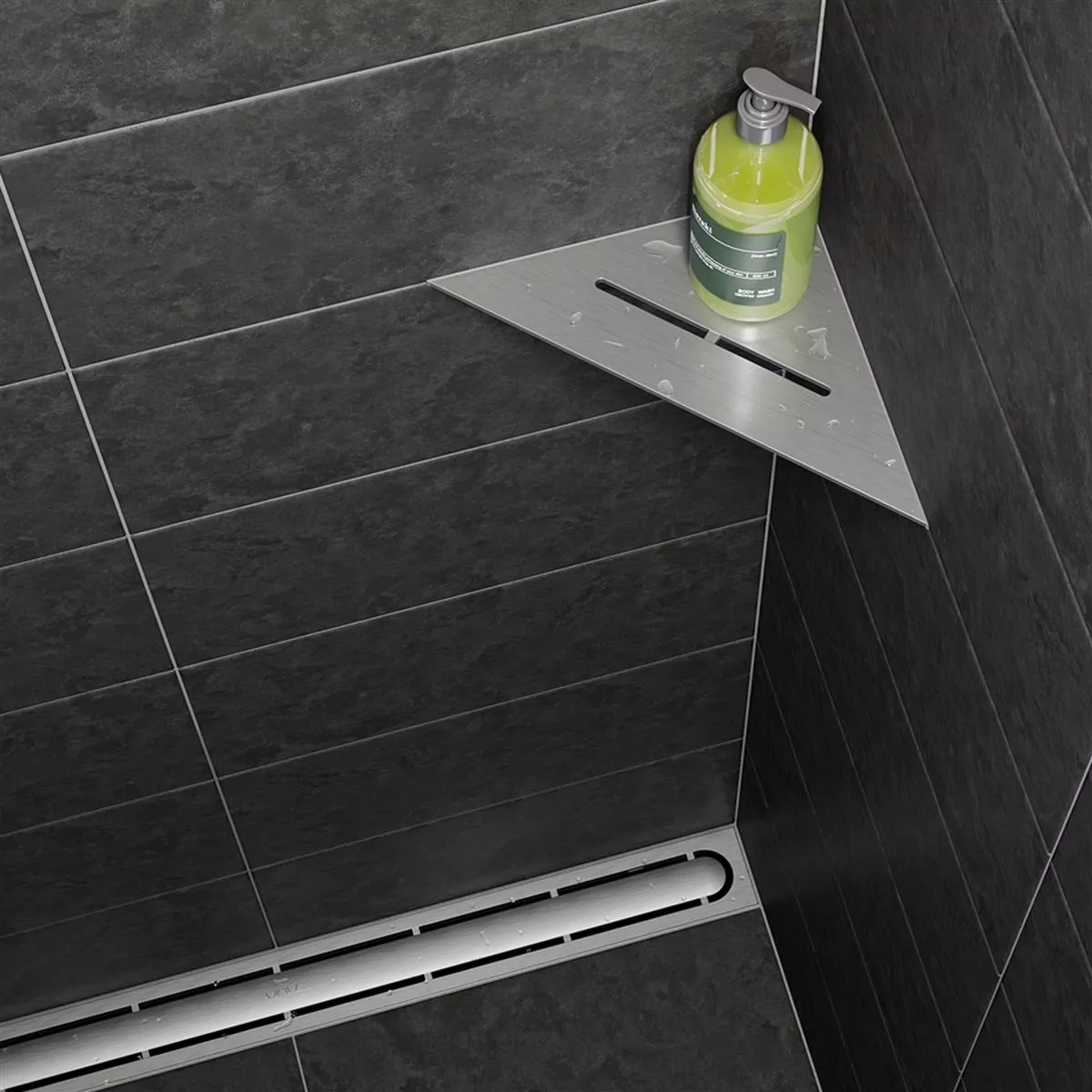 Tesa MOON Mensola Per Doccia Autoadesiva In Grafite Spazzolata - A Un Piano E Capiente, In Metallo Rivestito In PVD - Non Richiede Foratura, Soluzione Adesiva Inclusa - 92 Mm X 250