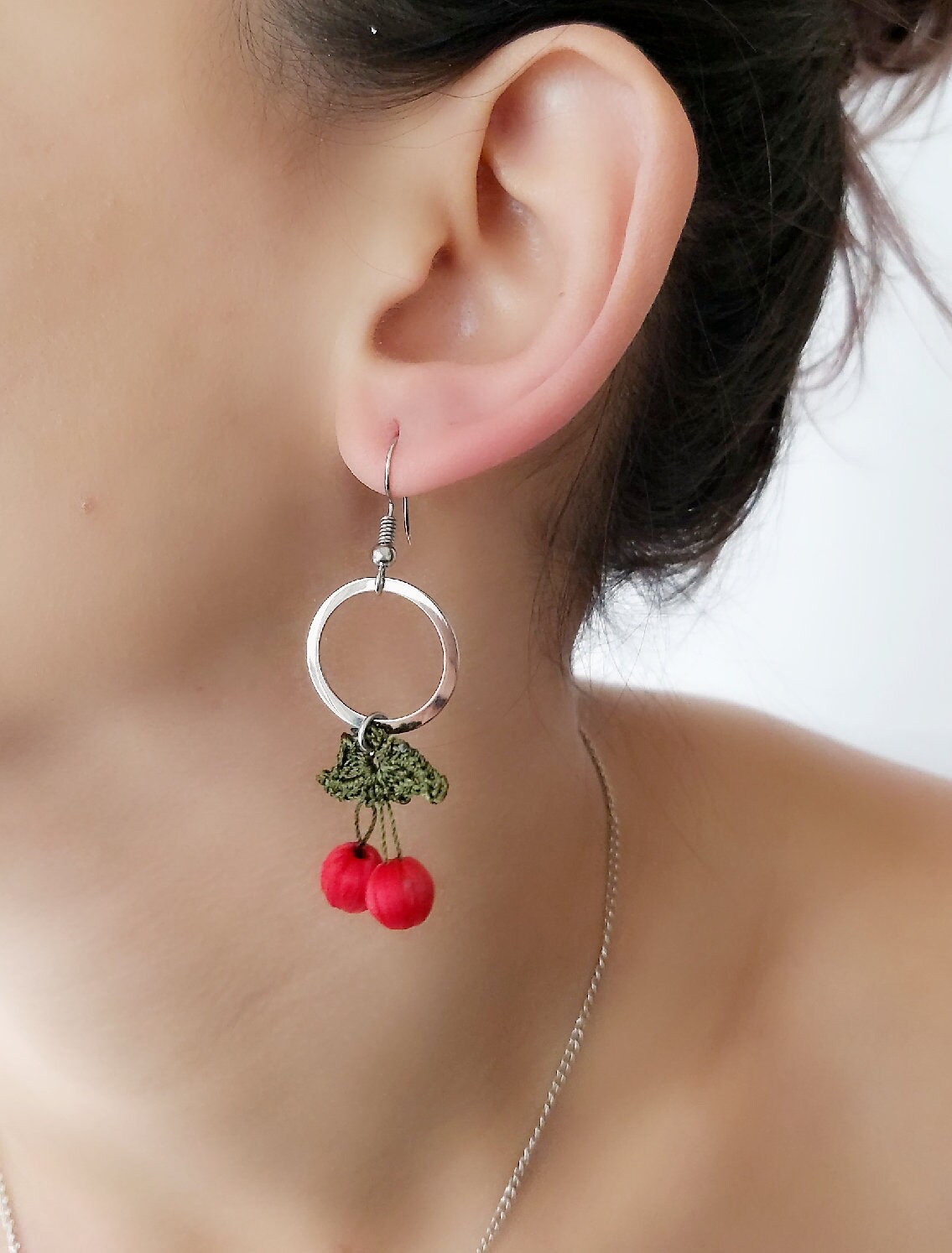 Orecchini Di Ciliegia E Collana Set,set Minimalista Di Gioielli, Regalo Per Lei,regalo Giorno Di San Valentino,regalo Di Ciliegia,Orecchini Di Ciliegia Ispirati, Bohomila - Italia