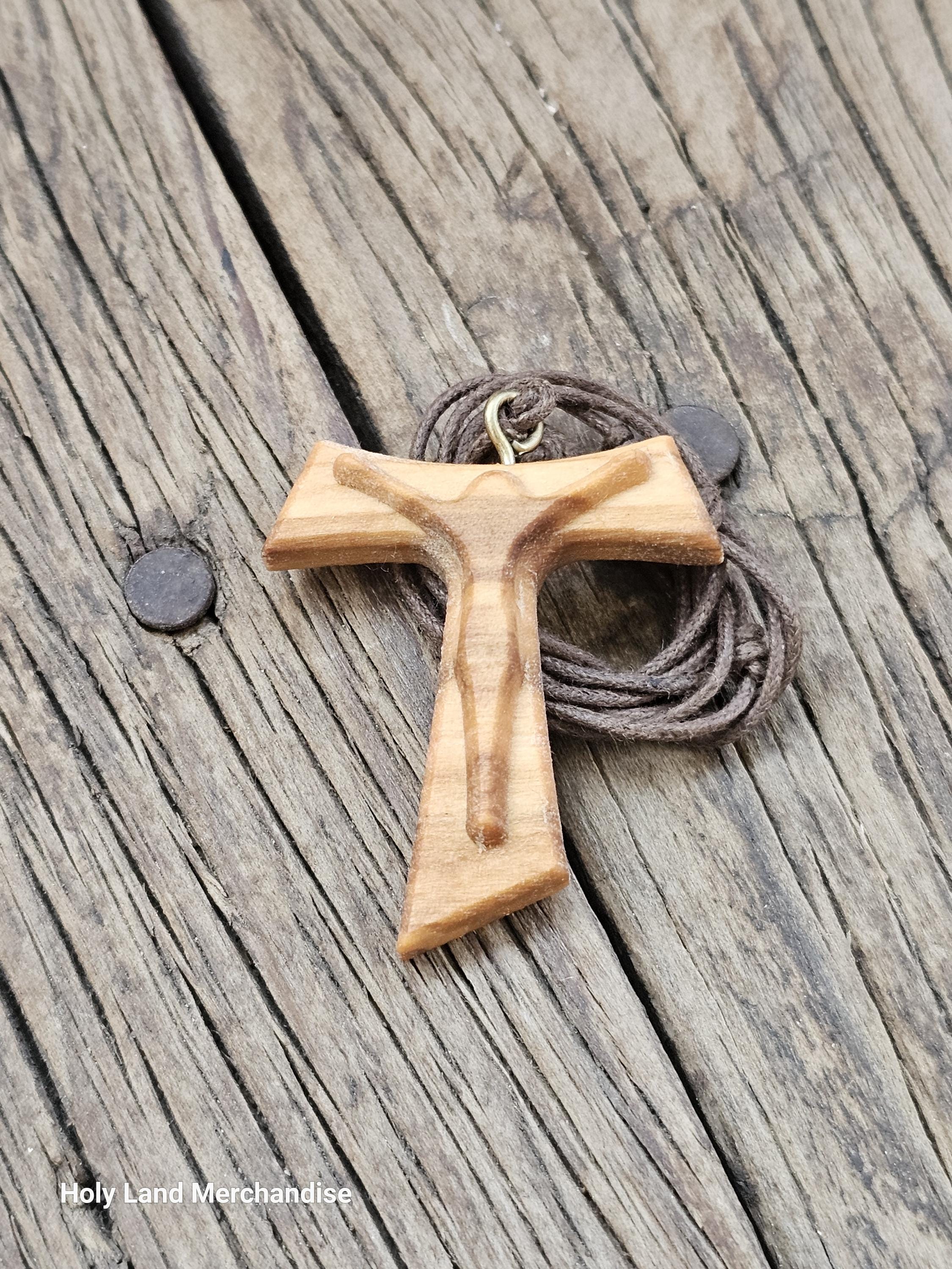 Croce Tau In Legno Di Ulivo E Cuoio Con Cordoncino Croce Di San Francesco Dassisi 15 Cm