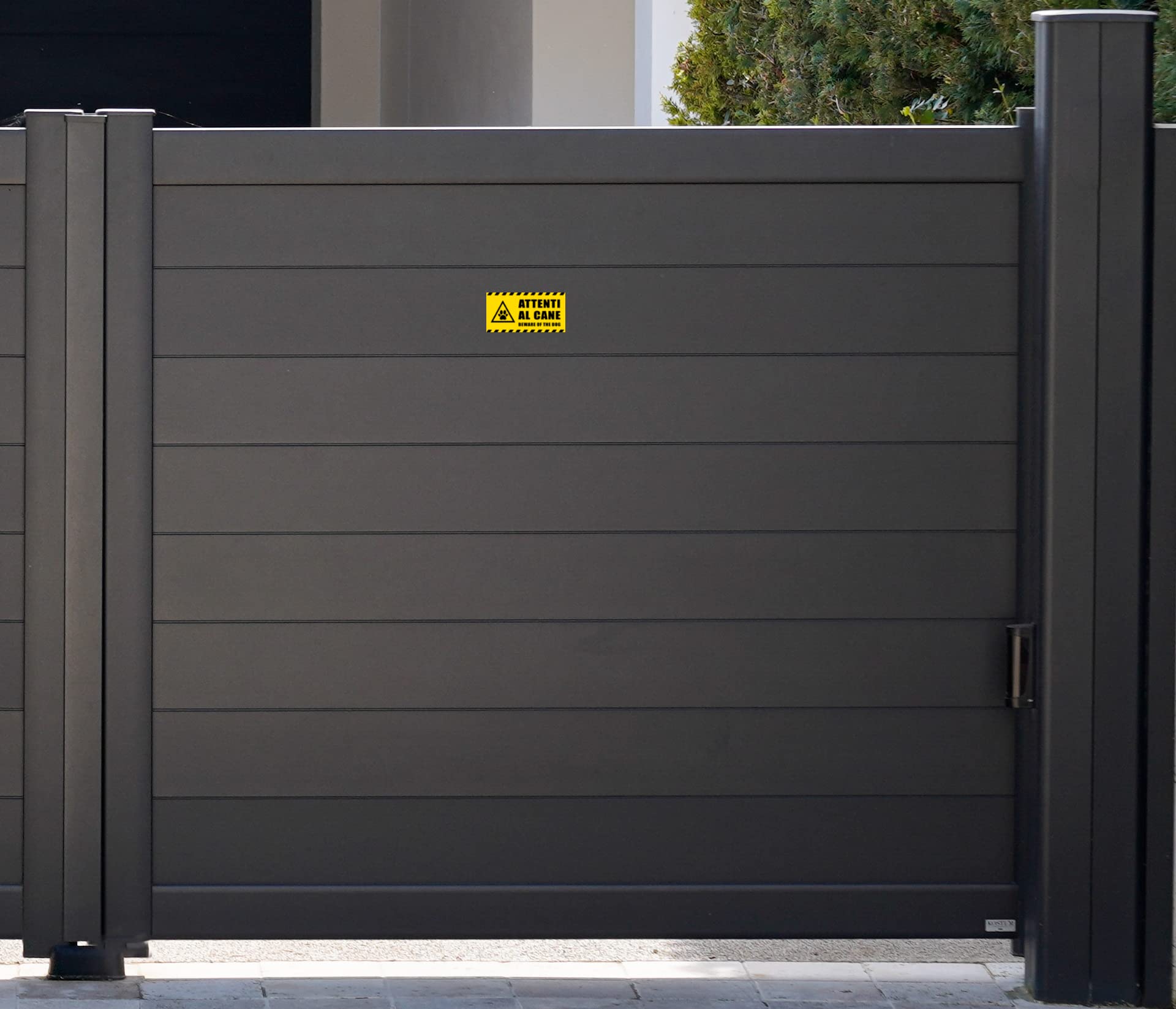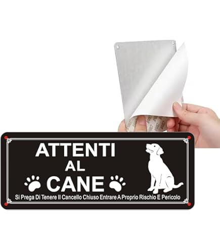 Cartello Attenti Al Cane Adesivi Attenzione Gradino, In Italiano E Inglese, Cartello In PVC Morbido, Misura 30x10 Cm Attenti Al Cane Cartello Personalizzato ⚠️ Pellicola adesiva in Vinile Morbido, spessore 180 micron, Satinato/Opaco (anti riflesso), con laminazione antigraffio, anti UV, a protezione da scolorimento per luce diretta it, stampato su materiali adesivi professionali ⚠️ MADE IN ITALY 2 Cartelli ATTENTI AL CANE in italiano e inglese: beware of the dog. Misura 20x10 cm Materiale: Vinile Morbido, autodesivo, spessore 180 micron, Satinato/Opaco (anti riflesso), con laminazione trasparente antigraffio e protezione anti UV che previene scolorimento da luce diretta ⚠️ Impermeabili, lavabili, Resistente alle intemperie a temperature -20° +80 gradi (per interni ed esterni)