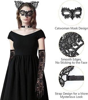 💖 MASCHERA PER OCCHI CON LACCIO - Il morbido laccio è progettato per adattarsi meglio al viso e non è scomodo per il viso. Un successo per ogni festa! Questa maschera per gli occhi elegante, seducente e dal design sofisticato è un must-have. donna maschera nera chiodi occhi labbra pizzo Adatto a tutte le acconciature. La parte inferiore dell'archetto è rivestita in gomma per renderlo più comodo da indossare. Maschere Donna Carnevale Maschera Da Gatto E Orecchie Da Gatto Fascia Per Donne Maschere Mascherina In Pizzo Prezzi Vestitevi da gatto o da donna gatto con questo cerchietto con orecchie da gatto. 💕CAPPUCCIO IN PIUMA - Ha un motivo a cuore e il cerchietto può essere regolato per adattarsi a teste di diverse dimensioni. Ha delle belle cinghie per regolare la vestibilità. 🔥CATWOMEN SET - La maschera di pizzo del Fantasma dell'Opera, la collana dell'amore e l'elastico per capelli con orecchie da gatto sono gli oggetti di scena perfetti per feste goth, punk, in maschera, di carnevale e a tema. I quattro bottoni possono essere regolati per adattarsi alla maggior parte delle teste di adulti, donne e ragazze.