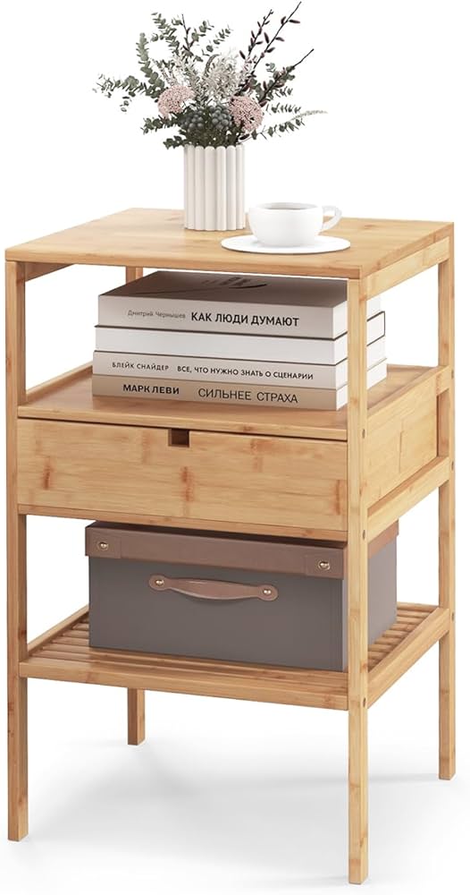 COSTWAY Comodino Camera Da Letto, Con Cassetto E Scaffale A Doghe, In Bambù, Tavolino Moderno A