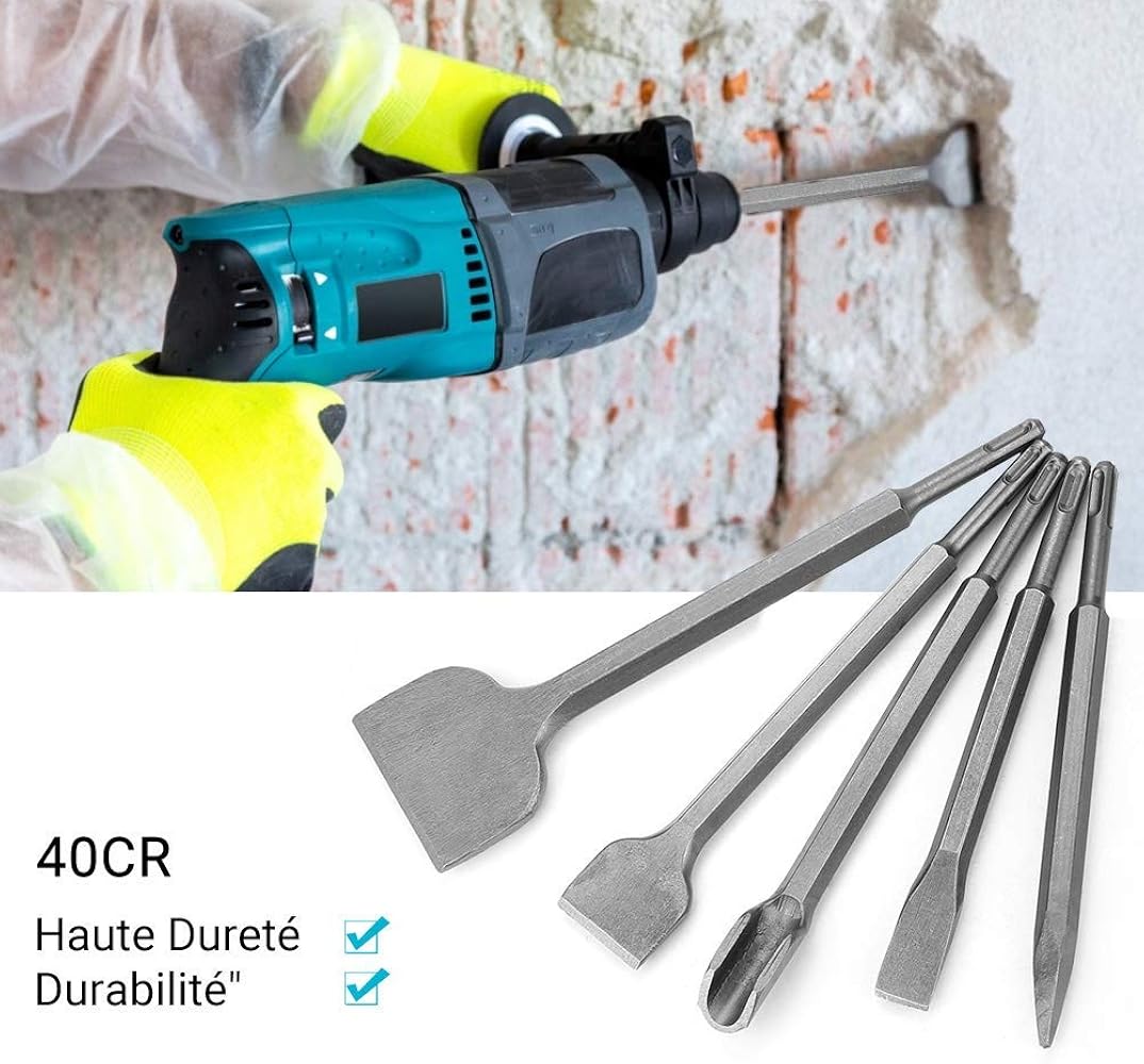 Muro Set Di Punte E Scalpelli SDS Plus Da 15 Pezzi In Valigetta Di Alluminio Punte Trapano Set Completo: il kit SDS-Plus da 17 pezzi include 12 punte di varie dimensioni e lunghezze, 2 scalpelli a punta, 3 scalpelli piatti e una custodia resistente Portatile e Organizzato: il set viene fornito in una robusta custodia sagomata (dimensioni: 29,5 x 23 x 5,6 cm), garantendo uno stoccaggio sicuro e un facile trasporto set di scalpelli per pietra e calcestruzzo da 5 pezzi con custodia in plastica ... E RISTRUTTURAZIONE DI MURATURA IN CEMENTO, PIETRA, MATTONI E ALTRI MATERIALI Design Efficiente: ogni punta presenta un design del canale a forma di U per una rapida rimozione dei detriti, favorendo un funzionamento più fluido e mantenendo la punta più fresca durante l'uso