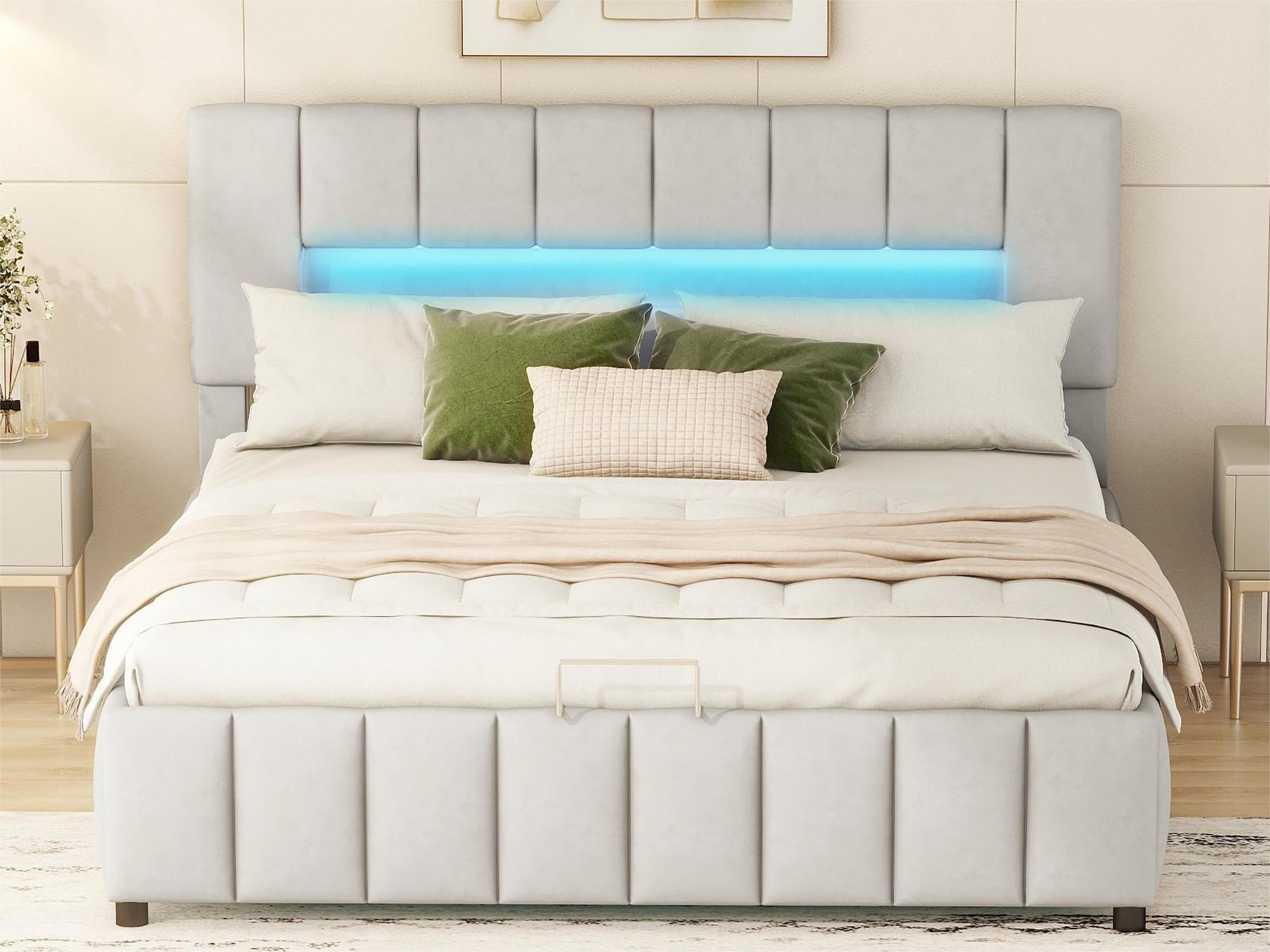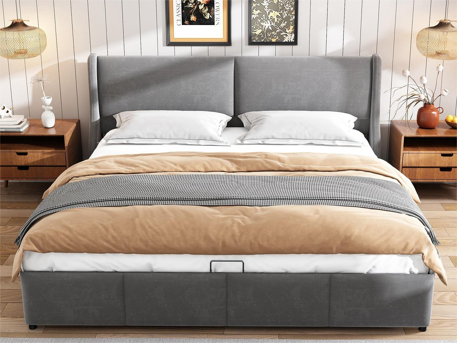Letto Contenitore 180 X 200 Cm Con Testiera E Un Cassettone Velluto Rete A Doghe Colore Grigio 92465760