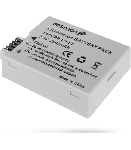Canon Eos 600d YUEFANSEN LP-E8 Batterie 1900 MAh Et Chargeur De Batterie LC-E8 LC-E8E Caricabatteria Canon Eos 450d Uscita: DC 8,4 V, 0,72 A. YUEFANSEN LP-E8 Batterie 1900 mAh et chargeur de batterie LC-E8 LC-E8E compatible avec EOS 550D, EOS 600D, EOS 650D, EOS 700D, Rebel T2i T3i T4i T5i, EOS Kiss X4 X5 X6 【Qualità delle batterie】Ultima decodifica, comunicazione senza barriere tra batteria e fotocamera, supporta la ricarica con il caricabatterie originale. Ricarica intelligente: il caricabatterie visualizza una luce gialla durante la ricarica. Quando è completamente carico, il caricabatterie si illumina di verde e interrompe automaticamente la ricarica per evitare danni alla batteria, consentendo di caricare in tutta tranquillità quando non c'è nessuno in giro. Inoltre, le batterie agli ioni di litio sono di piccole dimensioni e leggere e possono essere caricate o scaricate in qualsiasi momento senza produrre un effetto memoria. Tutte le batterie sono state sottoposte a rigorosi test intelligenti e sono dotate di protezione a circuito multiplo, protezione da cortocircuito/sovratensione/sovrascarica/sovracorrente.