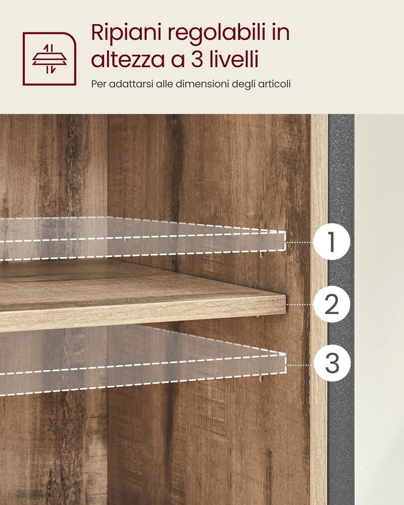 EASYCOMFORT - Easycomfort Credenza Cucina In Legno Con Ripiani E Armadietto 2 Ante Con Mensole Regolabili, 74.6x35.5x182.5cm