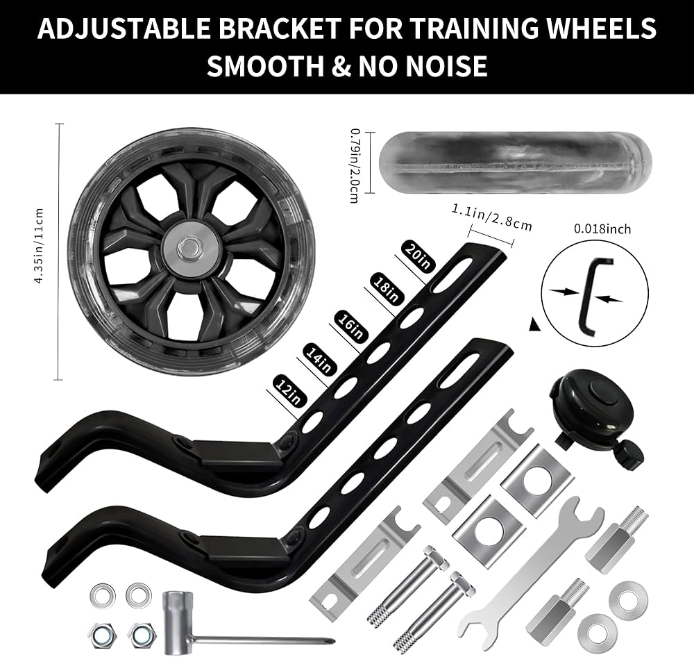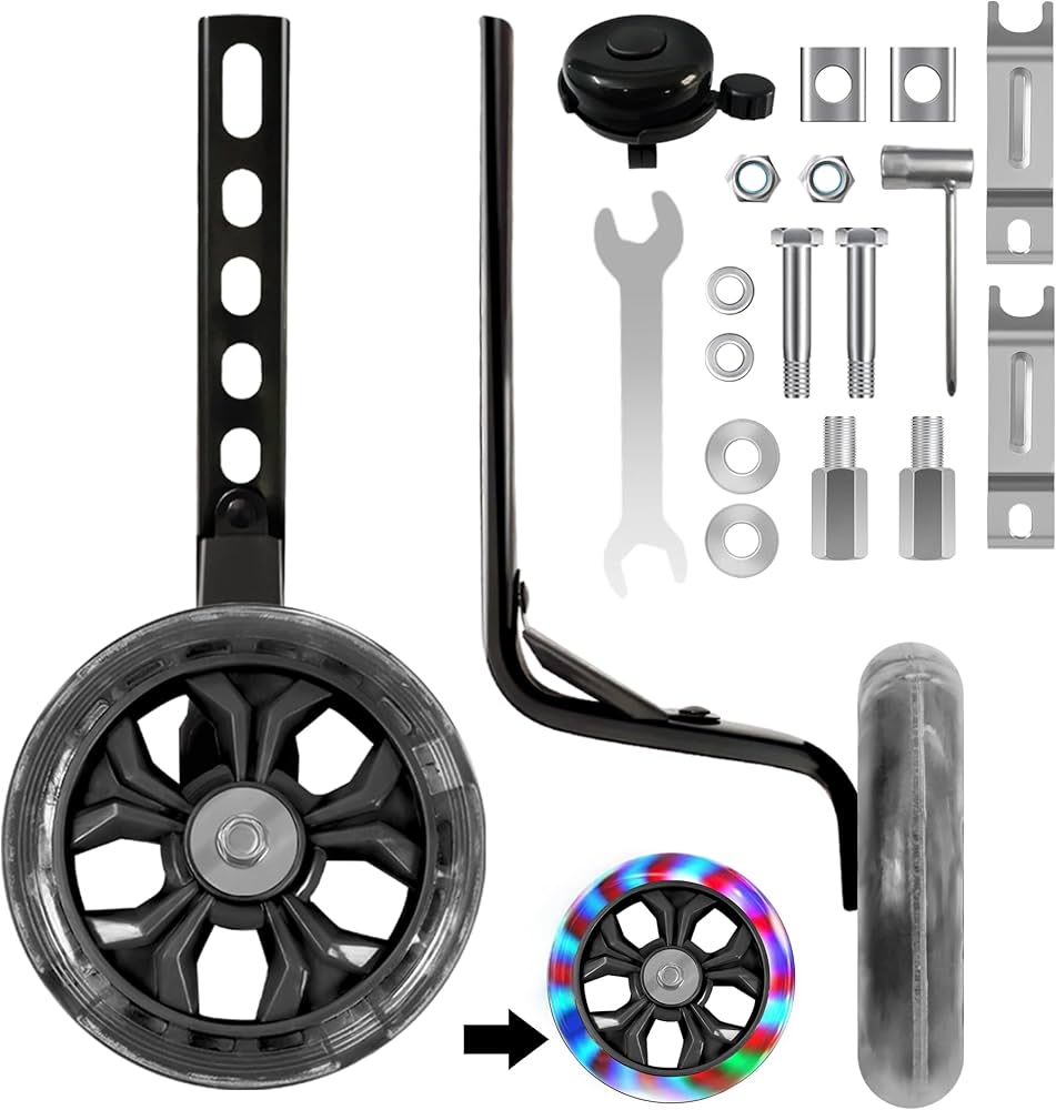 Sicurezza garantita, fiducia aumentata: realizzati con ruote in ABS resistenti e componenti in acciaio robusto, questi stabilizzatori danno la priorità alla sicurezza e alla fiducia per i piloti in erba. Stabilità e guida più silenziosa: progettate con plastica e gomma di alta qualità, queste ruote da allenamento eccellono in termini di resistenza all'usura e capacità antiscivolo, promettendo un'esperienza di ciclismo stabile e senza rumore. 1 coppia di ruote da allenamento per bici per bambini, ruote da allenamento illuminato regolabili, bici stabile resistente all'usura compatibile per 12 14 16 18 18 pollici bambini Ruote Bimbo Decathlon Monopattino Con Luci LED E Ruote Silenziose Per Bambini Più Di 8 Anni, Monopattino Pieghevole Con Tracolla Nero Ruote Bici Per Bambini Il loro design versatile garantisce una perfetta aderenza alle diverse biciclette per bambini, indipendentemente dalle loro dimensioni. Ci assumiamo la piena responsabilità della qualità del prodotto e diamo priorità all'assistenza tempestiva, garantendo un'esperienza fluida con le risposte entro 24 ore. I bambini possono godersi la gioia di andare in bicicletta senza suoni dirompenti. Assistenza clienti dedicata: Impegnato per la soddisfazione del cliente, il nostro attento team di supporto post-vendita è pronto a rispondere tempestivamente a qualsiasi dubbio o domanda. Stabilizzatori per bici CycForge per bici da bambino - con ruote nere silenziose Flash - compatibili con biciclette per bambini da 12 14 16 18 20 pollici a velocità variabile e bici a velocità singola