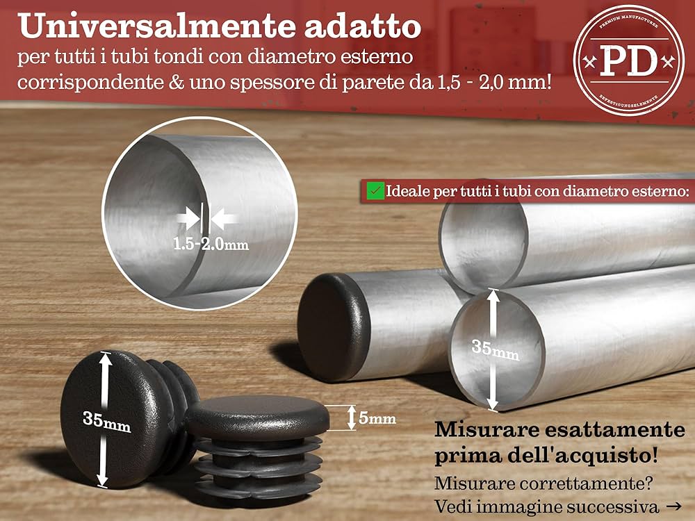 Questi Tappi alettati tondi da 35 mm , prodotti da EMFA, sono l'ideale 226098038344 DIMENSIONI e COLORE: Tappo terminale tondo di dimensioni 35 mm e spessore della parete da 1,0 a 2,0 mm, Colore: Nero (RAL 9005), 3,5 cm, pezzi in confezione: 4. Altre dime Utilizzati in strutture in acciaio, alluminio e profili in plastica, sistemi di recinzione, macchine, dispositivi, mobili, attrezzature per parchi giochi e altri elementi dell'architettura del giardino. MATERIALE E QUALITÀ: Tutti i nostri tappi terminali tondi sono realizzati in polietilene PE di ottima qualità, un materiale durevole, resistente alla deformazione, ai raggi UV e alle varie condizioni meteorologiche. DIMENSIONI e COLORE: Tappo terminale tondo di dimensioni 35 mm e spessore della parete da 1,0 a 2,0 mm, Colore: Bianco (RAL 9010), 3,5 cm, pezzi in confezione: 20. Altre dimensioni nello schema e nella tabella. Facilita lo spostamento dei mobili, protegge il pavimento dai graffi. Tappi 35 Mm Offerte Tappi Plastica Tubi EMFA Tappo Alettato Tondo 35 Mm Bianco 10 Pezzi - Tappi A Lamelle Rotondi 35mm Per Tubo - Terminali In Plastica Protettivi 3,5 Cm Tappi In Plastica Tappi Per Foro 35 Mm DESIGN PERFETTO: Il tappo tondo è stato progettato con la massima cura per la parte superiore del tappo, con angoli perfettamente arrotondati e una superficie opaca difficile da graffiare, che si abbina con altri materiali per armonizzarsi strutturalmente oltre che nel colore.