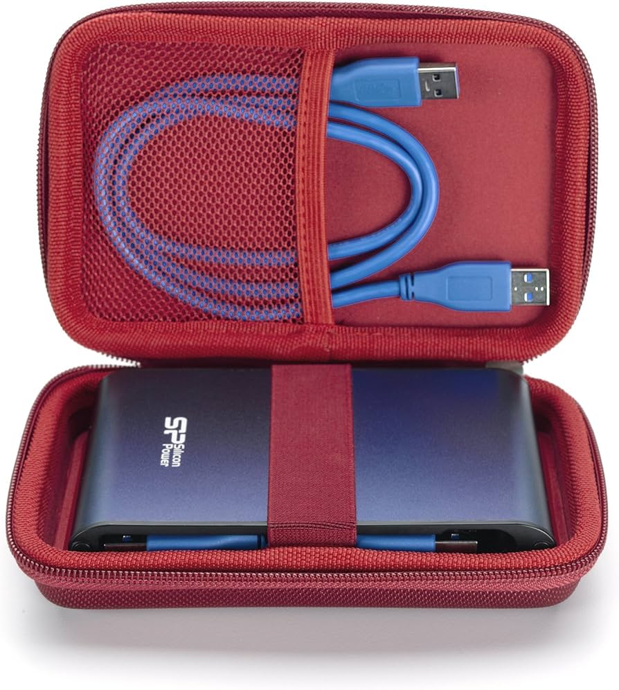 Thunderbolt 4 Portable SSD Drive Logic DL-64-RED Portable EVA Hard Drive Carrying Case Pouch Red Hard Disk Esterno Toshiba Custodia esterna e interna per riporre cavi o accessori. Compatibile con Western Digital, Seagate, Silicon Power, Iomega, Toshiba, e molti altri dispositivi portatili. The Drive Logic DL-64 portable carrying case is an excellent way to store or transport portable hard drives, cameras, GPS or other devices. The attractive design allows for easy and convenient portability. A durable hard-shell exterior provides excellent Interno in memory foam per una maggiore protezione. Dimensioni massime compatibili 6.0 x 3.7 x 1.2