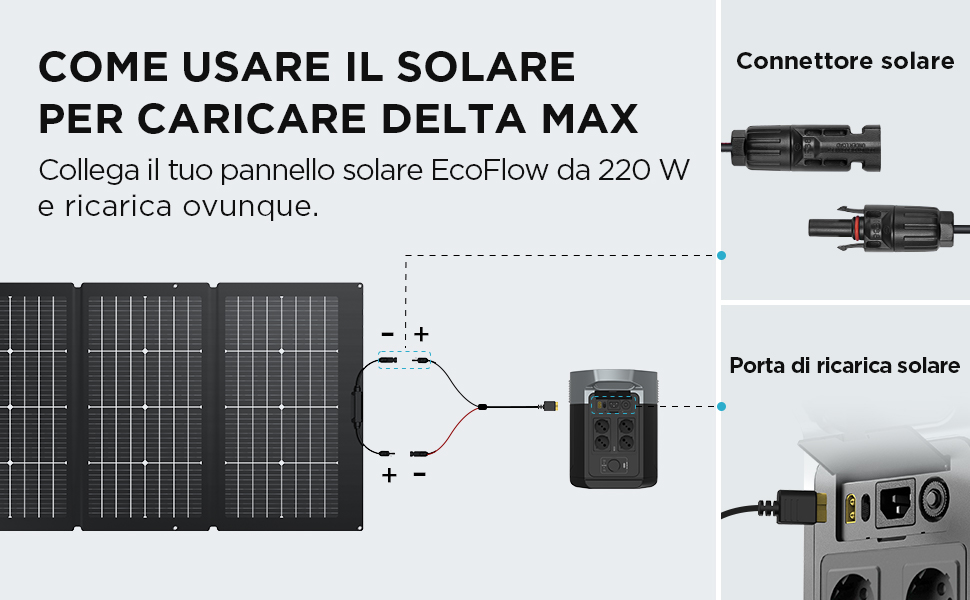 Generatore Solare EcoFlow DELTA Max (2000) Da 2016Wh Con 220W Pannello Solare, 4 Prese CA Da