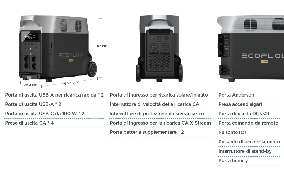 【Efficienza sbalorditiva】Associato a DELTA Pro, il pannello solare da 400W utilizza l'algoritmo MPPT per ottenere un'efficienza ottimale con la pioggia o con il sole. 【Resistente alle intemperie】Questo pannello solare da 400 W è progettato per resistere agli agenti atmosferici. Goditi oltre 6.500 cicli completi e una durata di vita. Ideale per viaggi e campeggio all'aperto. [Capacità ultra-potente]DELTA Pro ha una grande capacità di batteria da 3600Wh con un'uscita CA da 3600W e 14 prese totali, che lo rendono una batteria domes Un'ottima alternativa ai tradizionali generatori a gas, senza fumi, senza rumore e con una soluzione di energia rinnovabile. 【Capacità ultra-potente】DELTA Pro ha una grande capacità di batteria da 3600Wh con un'uscita CA da 3600W e 14 prese totali, che lo rendono una batteria domestica portatile per l'uso in tutta la casa. Con un peso di soli 35.3 lb (16 kg), può essere facilmente imballato e trasportato, ovunque vi troviate. È realizzato con strati di EVA flessibile e robusta fibra di vetro per garantire durata e mobilità. Godetevi la stessa politica di garanzia di un prodotto nuovo, con una garanzia di 5 anni. Ideale per viaggi e campeggio all'aperto. 【Batteria LFP a lunga durata】Questo generatore di energia a batteria dispone di una batteria LFP. Goditi oltre 6.500 cicli completi e una durata di vita. EcoFlow Delta 3600w EcoFlow Delta Max E Pannello Solare Portatile 400W, Recensione Delta Pro Ecoflow