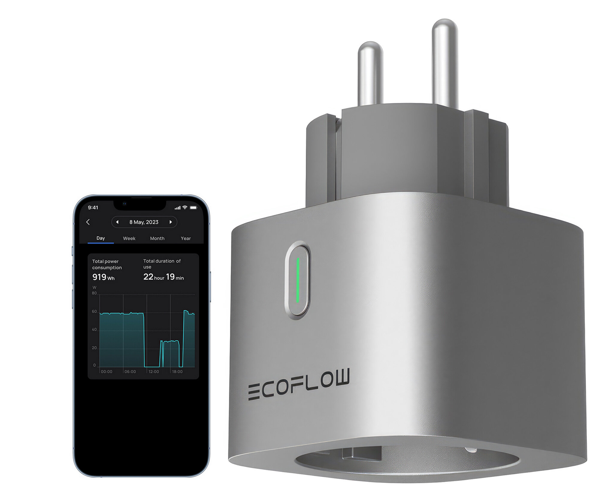EcoFlow Smart Plug, Wi-Fi, Monitoraggio Del Consumo Energetico E Assegnazione Automatica Dell'energia, Controllo App/vocale, 5011401002, EFA SmartPlug-EU