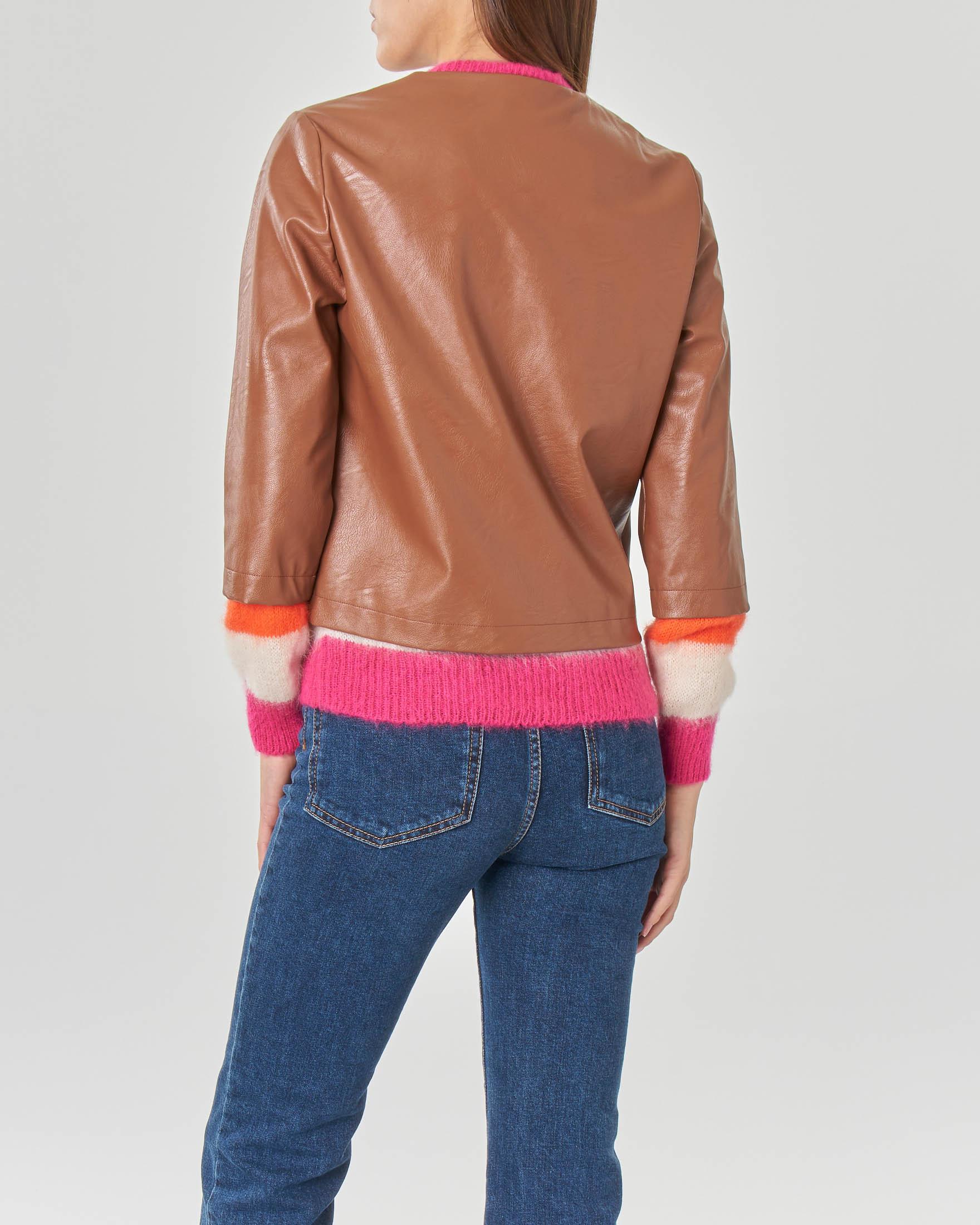Laphilo Giacca Corta Donna Ecopelle Bolero Con Cerniere Manica Lunga