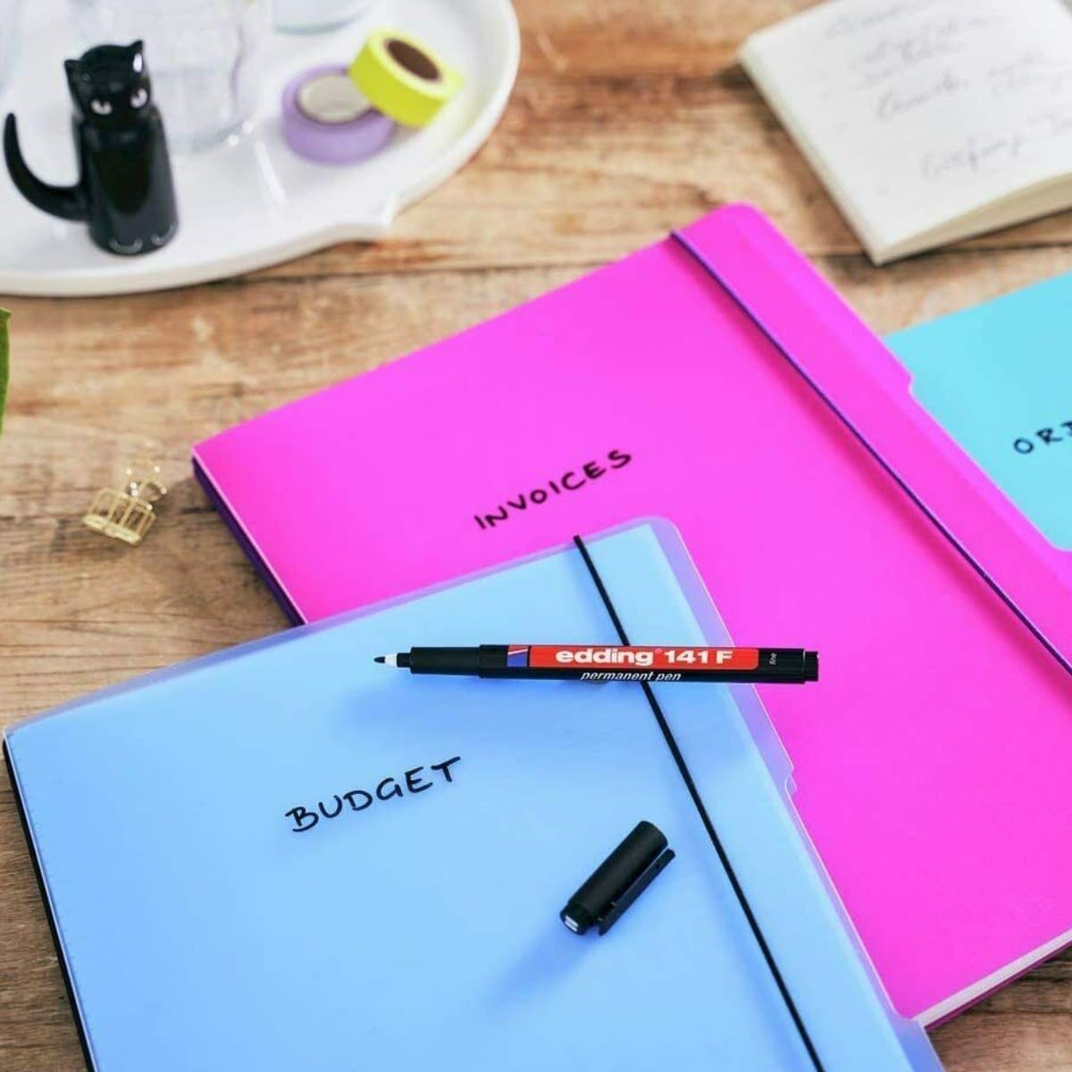 edding 141 F permanente pen - 10 stiften - blauw - ronde punt 0,6 mm - pen voor schrijven op glas, plastic, folies en gladde oppervlakken - permanent, sneldrogend, veegvast en watervast La penna edding 141 F è disponibile in 5 colori L'inchiostro del pennarello permanente è impermeabile e ad asciugatura rapida, per un'applicazione facile e pulita a scuola o al lavoro Pennarelli Indelebili Neri Edding 141 F Penna Permanente - Rosso - 10 Penne - Pennino Rotondo 0,6 Mm - Penna Per Scrivere Su Vetro, Plastica, Fogli E Superfici Lisce Edding 141 F Permanent Pen La confezione contiene 1 penna permanente di colore nero Pennarello per disegnare e scrivere in modo permanente e indelebile su superfici lisce e chiuse come plastica e vetro; ideale per pellicole overhead