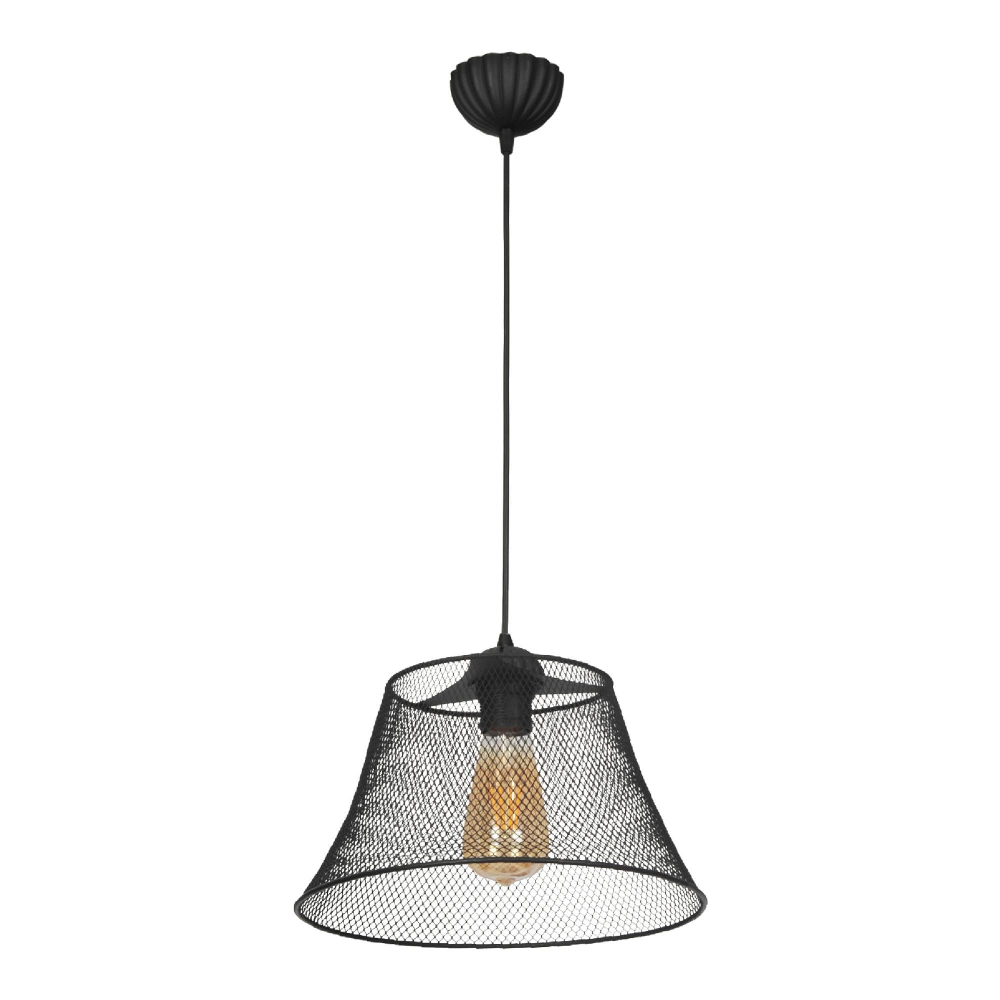 Lampada A Sospensione 'Egremont' In Stile Industriale Lampada Pendente Con 1 Fonte Luce Paralume Conico A Rete Nero Lux Pro 879582