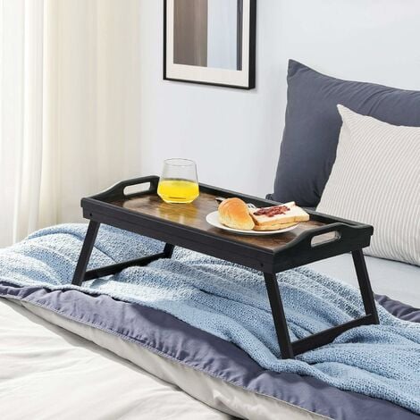 Vassoio Da Letto In Bambù Elegante Con Pieghevoli – Righe Lucide, Per La A Letto, O Lavoro