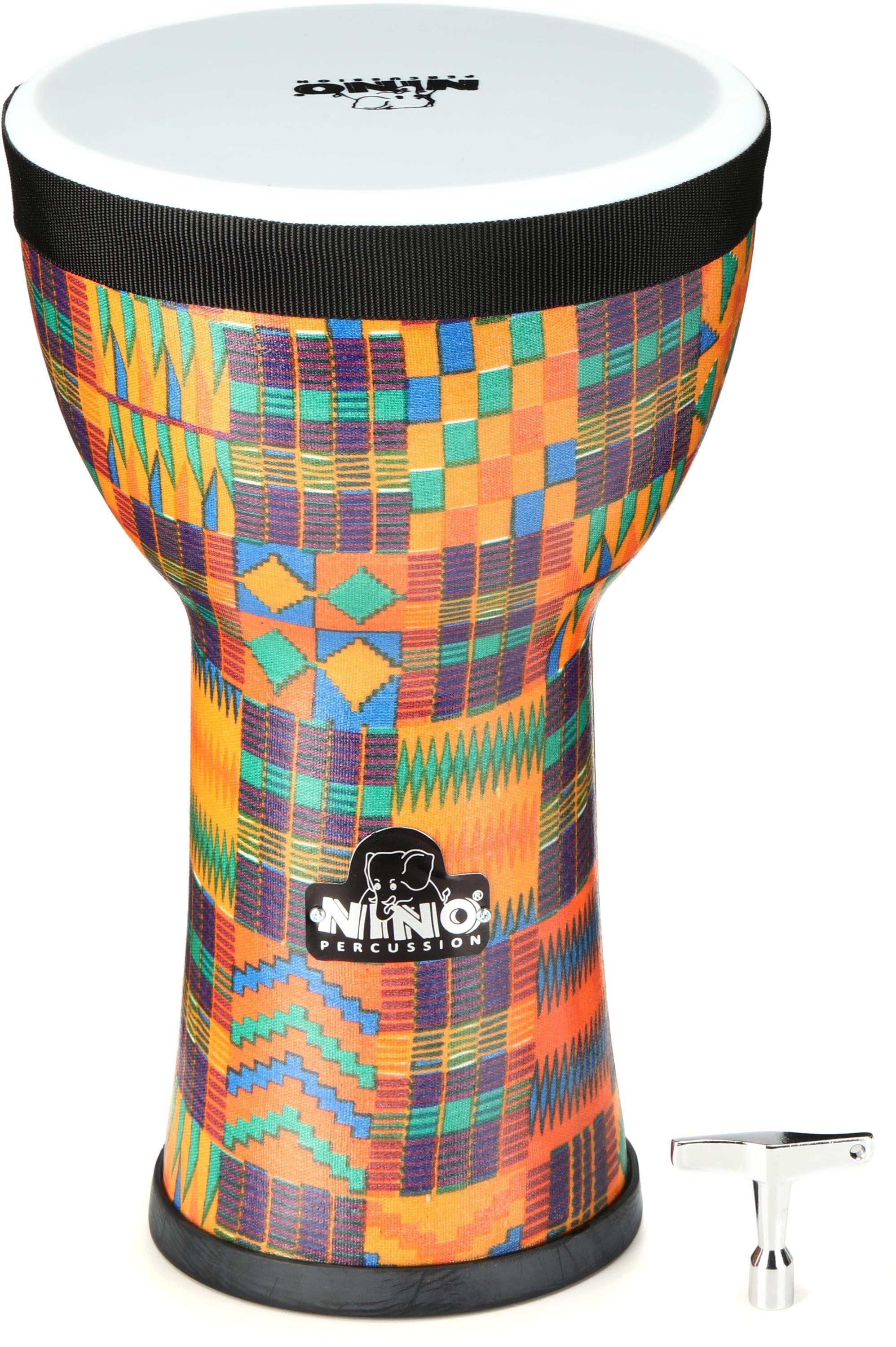 Nino Percussion Djembe, Serie Elements, Misura Mini, Fantasia Sole 15,24 cm di diametro x 26,6 cm di altezza (6 x 10,5) Pelle e fusto in plastica al 100%; perfetti per suonare all'aperto Nino Elements Fire Engine Mini Djembe · Djembe NINO Percussion Elements Mini Djembes are especially suitable for small hands and in any environment. In addition, with their pre-tuned plastic skin and the lightweight plastic body, these djembes come in a c Struttura sintetica, superficie sintetica