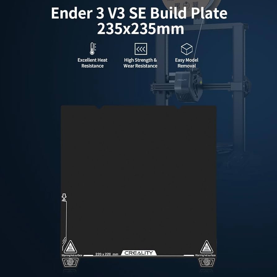 Ender 3 Creality K1 Creality V3 SE - Piastra Di Montaggio Ufficiale Build Plate Size Garanzia di qualità: piastra 100% ufficiale Creality Ender 3 V3 SE, 3 pezzi, originale 235 x 235 mm in acciaio armonico, piattaforma riscaldabile flessibile, strutturata. Garanzia di qualità: piastra 100% ufficiale Creality Ender 3 V3 SE, 3 pezzi, originale 235 x 235 mm in acciaio armonico, piattaforma riscaldabile flessibile, strutturata Facile rimozione dei modelli stampati: rimuovere facilmente le stampe senza attrezzi, basta estrarre la piastra in acciaio per molle e piegarla leggermente ripetutamente per sollevare direttamente le stampe. Dopo aver sostituito il letto di pressione, si prega di livellare nuovamente il letto per ottenere risultati di stampa migliori Vi preghiamo di contattarci (venditore) tramite Fai una domanda, trovaci direttamente, perché il nostro servizio clienti vi risponderà entro 24 ore, indipendentemente dalla domanda che riguarda Maggiore aderenza dei modelli, non si deforma facilmente, mentre la creatività rimane saldamente ancorata durante la stampa Ottima aderenza, più stabile: una sensazione inconfondibile e opaca grazie alla speciale superficie ruvida e opaca della piastra.