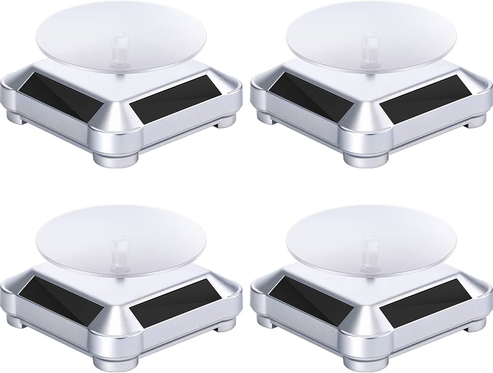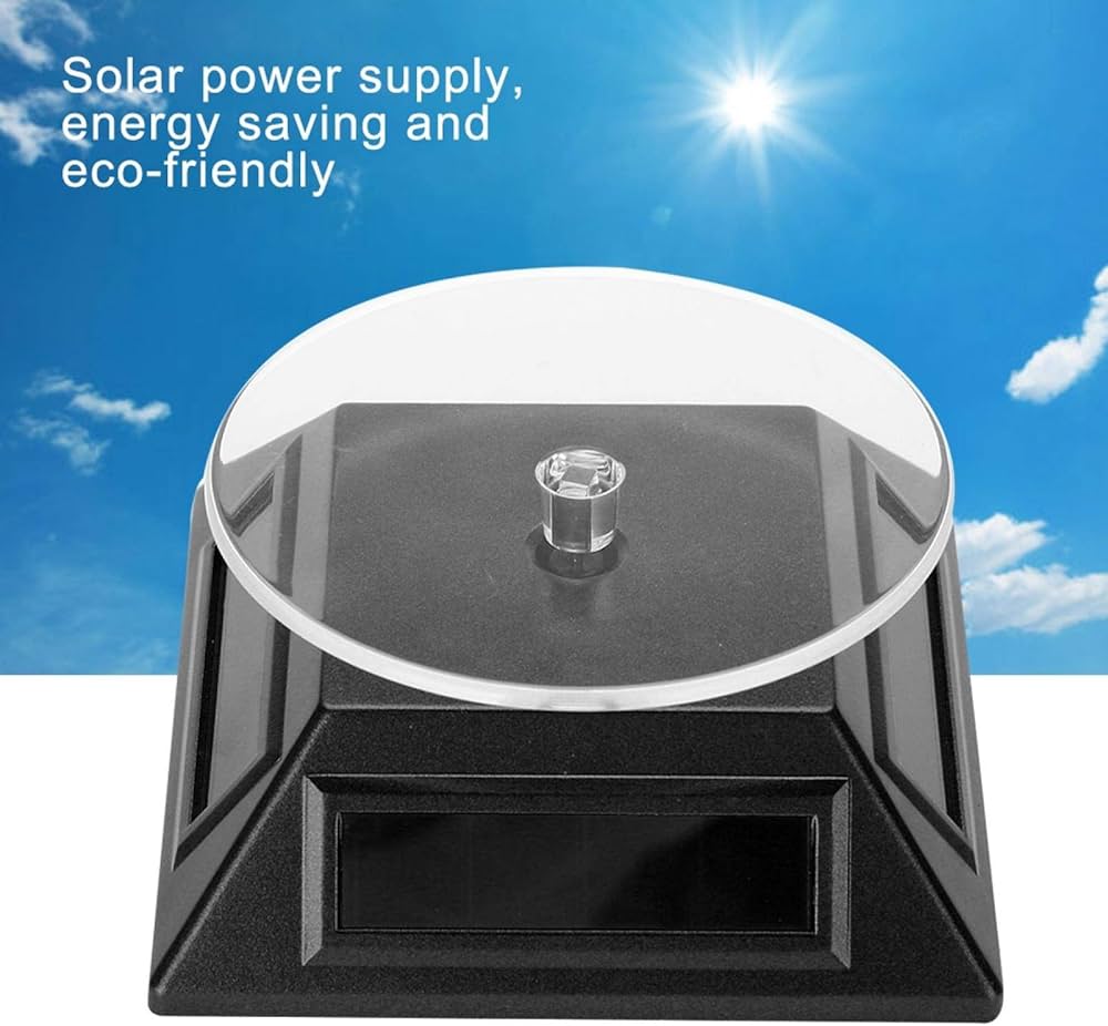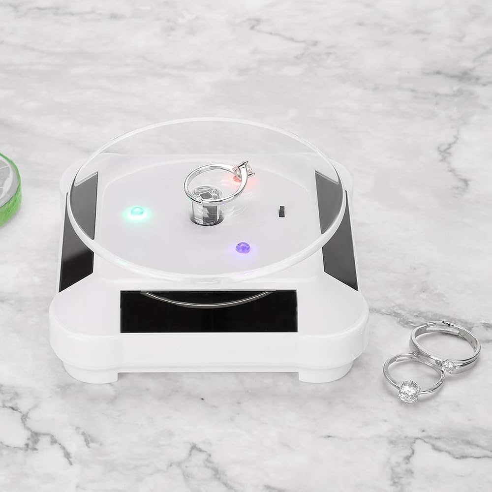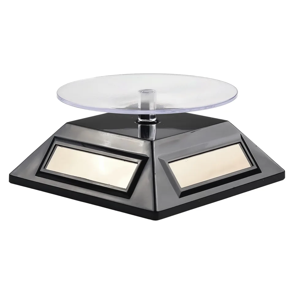 Ideale anche per registrare video di vendita o promozionale per poter mostrare ogni pagina dell'articolo. Acquista Espositore per gioielli, con display, a energia solare, girevole a 360 gradi, per orologi, cellulari, gioielli e Base, colore - Adatto per esporre prodotti come gioielli, telefono cellulare, orologi, oggetti di cristallo, piccoli accessori, ecc. - Con questo espositore puoi presentare gli oggetti memorabili nel tuo soggiorno o camera da letto che ti faranno sentire di buon umore. - I pannelli solari forniscono energia al tavolo girevole, risparmio energetico e rispettoso dell'ambiente. Il supporto ruota lentamente in modo che gli spettatori possano vedere tutti i lati del prodotto. È pratico, la portata è di 500 g. Nota: Questo prodotto può utilizzare la batteria interna. Se la luce del sole è sufficiente, può continuare a ruotare. Colore opzionale: Nero Diametro piatto: ca. 9 cm. Dimensioni esposizione: ca. 10 x 10 x 4,7 cm. Peso: circa 114 g. Espositore Girevole Per Gioielli Espositore Girevole Ad Energia Solare | - Forniture Per Negozi Piatti Orologio Contenuto della confezione: 1 espositore per gioielli. Specifiche: Condizione: nuovo di zecca Tipo di articolo: espositore Materiale: plastica.