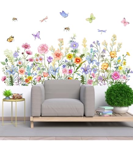 Wondever Adesivi Murali Erba E Fiori Baseboard Sticker Da Muro Giardino