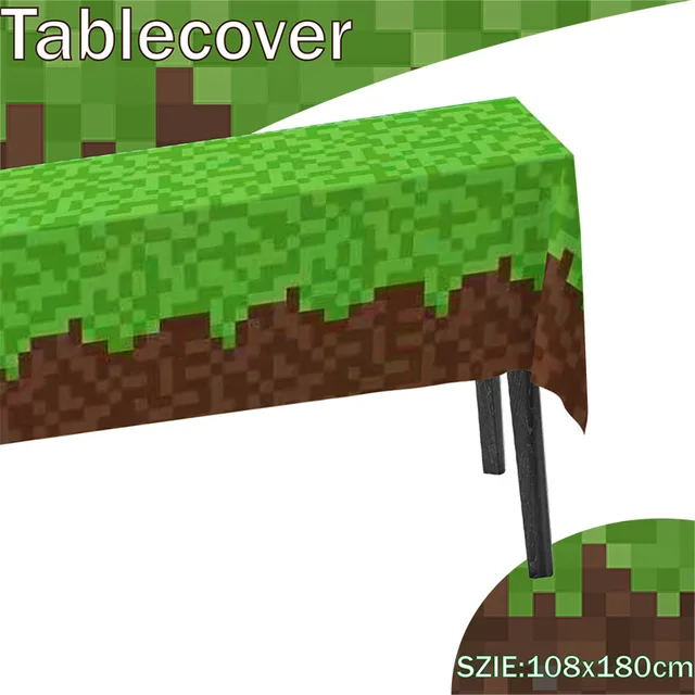 Decorazioni Di Compleanno Per Giocatori Di Tovaglie In Erba Per Feste Di Compleanno In Stile Pixel Miner, Fornure Per Feste Artigianali In Miniera Pixel Miner Party