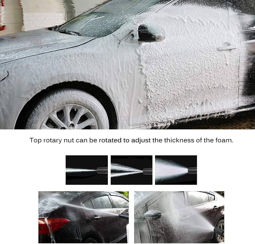 La Professional Foam Lance combina un flusso d'acqua ad alta pressione mescolato con detersivo e aria per produrre una schiuma aderente. Nuovo design Heavy Duty, ideale per appassionati o professionisti. Disegno a spruzzo variabile, dalla punta della mati Realizzato in metallo di alta qualità e materiali plastici con lavorazione squisita, resistente all'uso Nuovo design Heavy Duty, ideale per appassionati o professionisti. 3 in 1: Pistole a spruzzo a spruzzo ad alta pressione, grande 1 l bottiglia di lana a schiuma da neve e 5 spruzzi a spruzzo - 0 °, 15 °, 25 °, 40 °, 65 ° (sapone). Consente l'applicazione uniforme di detergenti o disinfettanti su una grande superficie. Pulitore Tappezzeria Lancia Schiuma Di Neve, Pistola Ad Alta Pressione, Erogatore Di Sapone Lance, Rondella Auto Regolabile Con Panno Di Lavaggio In Fibra Per Serie K (K2 Idropulitrice A Batteria Disegno a spruzzo variabile, dalla punta della matita al getto del ventilatore.