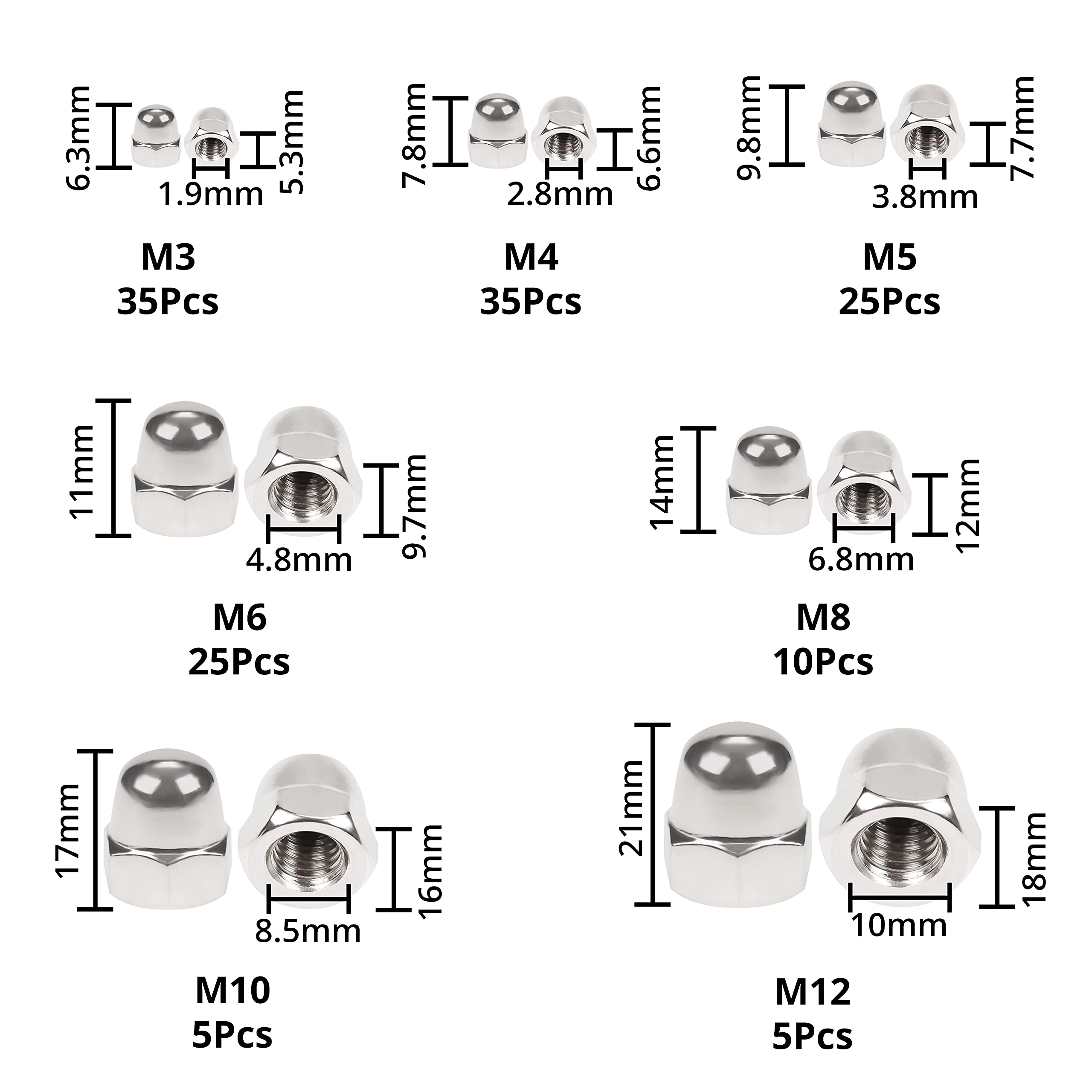 - Diametro interno dadi ciechi M10: 8,5 mm. - Diametro interno dadi ciechi M3: 1,9 mm. Dadi Esagonali Catalogo Dado A Calotta Esagonale In Acciaio Inossidabile 316 A4 M3 M4 M5 M6 M8 M10 M12 M14 Dadi A Cupola Con Tappo Esagonale Decorativo Metrico Di Grado Dadi Esagonali Configurazione SODDISFATTI O RIMBORSATI: Tutti i nostri set dado cieco inox venduti sono coperti dalla garanzia di rimborso del 100% nel caso in cui non fossi soddisfatto del tuo acquisto. - Dadi ciechi M12: 21 x 18 mm. Usali in progetti fai-da-te, decorazioni, su scale, binari, tessitori, elementi di fissaggio e motocicli. - Dadi ciechi M5: 9,8 x 7,7 mm. Facili da montare e rimuovere, possono essere usati con bulloni, barre filettate e prigionieri per collegare i componenti. Dimensioni: - Dadi ciechi M3: 6,3 x 5,3 mm. I dadi di sicurezza sono un tipo di dado esagonale con una parte superiore a cupola che copre l'estremità della punta del bullone, proteggendo la filettatura - Dadi ciechi M8: 14 x 12 mm. La loro struttura robusta impedisce loro di essere danneggiati sotto alta pressione e garantisce la longevità. - Scatola di stoccaggio: 9,5 x 2,2 x 17 cm. Il set è ben confezionato in una custodia di plastica portatile che misura: 9,5 x 2,2 x 17 cm. MATERIALE DI ALTA QUALITÀ: I dadi esagonali a cupola sono realizzati in acciaio inossidabile 304 resistente alla corrosione che offre durata e resistenza senza eguali. In tal caso, ti preghiamo di contattarci e ti rimborseremo. Avvertimento! - Diametro interno dadi ciechi M5: 3,8 mm. Questi dadi di sicurezza forniscono una protezione efficace contro lesioni ed agenti atmosferici. I dadi di sicurezza sono un tipo di dado esagonale con una parte superiore a cupola che copre l’estremità della punta del bullone, proteggendo la filettatura. AMPI USI: I dadi sono ampiamente usati nell’edilizia, nella produzione, nell’ingegneria e assemblaggio, nell’industria automobilistica e sono adatti per apparecchiature meccaniche, elettroniche, comunicazione, marine, mediche, per parchi giochi o per l’illuminazione. - Diametro interno dadi ciechi M8: 6,8 mm. Incluso: - 35 dadi ciechi M3. - 35 dadi ciechi M4. - 25 dadi ciechi M5. -25 x Dado cieco M6. - 10 dadi ciechi in acciaio inox M8. -5 x Dado cieco M10 in acciaio inox. - Dadi ciechi M10: 17 x 16 mm. - Diametro interno dadi ciechi M6: 4,8 mm. Sono confezionati in una robusta scatola di plastica per una facile organizzazione.