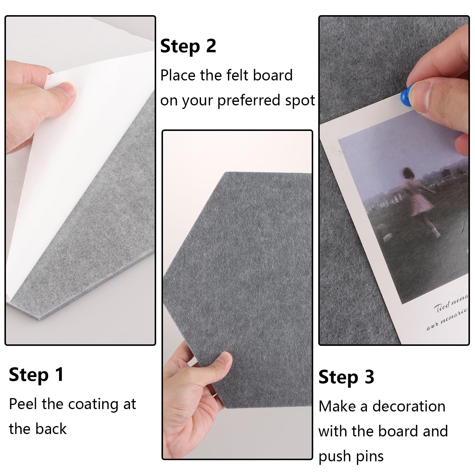 Colore: Nero, grigio scuro, grigio argento, grigio luna, grigio chiaro, giallastro. Colori: nero, grigio scuro, grigio argento, grigio chiaro, giallo chiaro Materiale: Realizzata in fibre di feltro, la bacheca è leggera, densa, non lacerante, resistente ai colori e inodore, ideale per i pannelli decorativi È sufficiente staccare il supporto e incollarlo nella posizione desiderata Bacheca Esagonale in Feltro: Bacheca Esagonale con Piastrelle Autoadesive in Feltro per Parete Ufficio Scuola Casa 8 Pezzi di Feltro Esagonale+ Una Ricerca Offerte Materiale: Fibra di feltro non inquinante Forma: esagonale Design Fai-Da-Te Disponibile: Esagoni feltro è resistente all'usura e durevole, robusto e indeformabile. Lavagna Sughero Da Parete 12 PCS TAVOLA Esagonale In Feltro Piastrelle Autoadesive Cartone Di Bacheca In Sughero Specifiche: Dimensioni: 15 x 26 x 30 cm È possibile incollare foto, orari, calendari, menu, e-mail, biglietti, note e altro ancora per arricchire la propria vita Può essere utilizzato come decorazione per la casa con foto di famiglia, promemoria o creazioni artigianali per creare un'atmosfera accogliente e bella. Design Autoadesivo: La bacheca feltro è autoadesiva e facile da attaccare. Può anche essere utilizzato come bacheca in ufficio per inserire note, citazioni o promemoria del calendario, pratico e conveniente. Contenuto della confezione: 12 bacheca in feltro multicolore esagonale 50 spilli Forte autoadesivo La parte posteriore è dotata di una forte colla che non si stacca facilmente, quindi non è necessario acquistare ulteriori elementi di fissaggio.