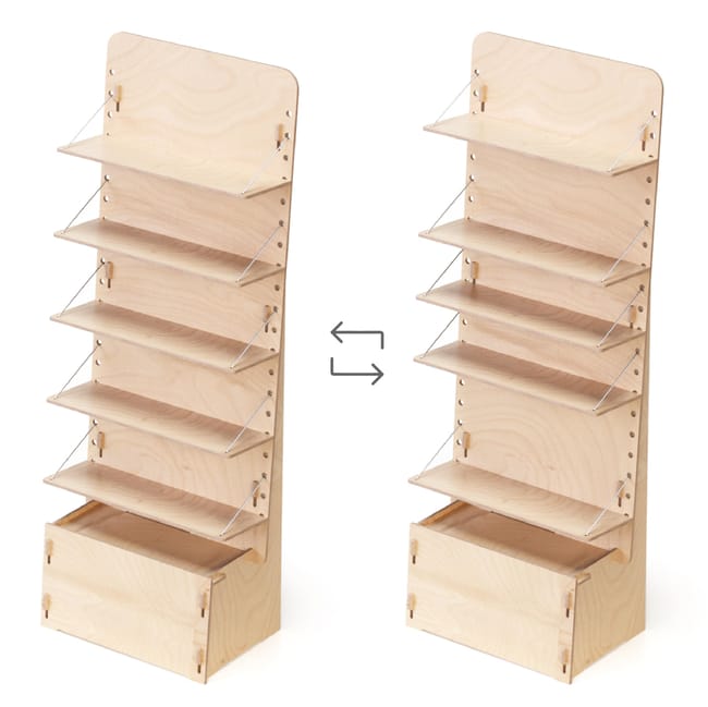 Espositore In Legno, Da Terra, Regolabile, Inclinazione E Altezza Ripiani Variabile, Espositori Per Negozi, Alimentari, Farmacie, Cartolerie, Ferramenta, Librerie (Flexi - L.45cm