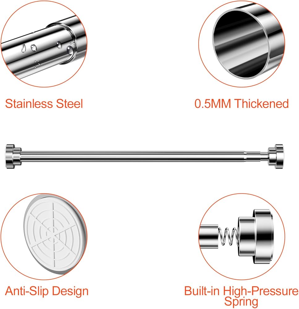 Bastone Tenda Doccia Telescopico In Acciaio Inox, Asta Per Tenda Da Doccia Angolare Estensibile A U, Senza Foratura Mai Ruggine Antiscivolo Estensibile 130-180 Cm Asta Per Tenda Di Tensione Per Ba