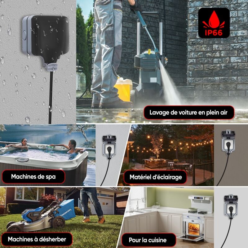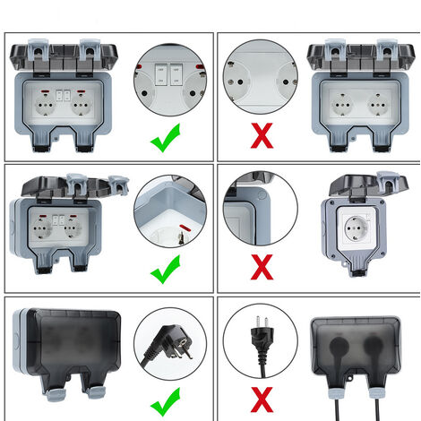 ✅Installazione semplice e set di accessori: le prese da giardino sono facili da smontare e installare e sono molto adatte a tutti i dispositivi da esterno. Il set completo di accessori contiene 8 viti, 4 spine, 8 guarnizioni in gomma (nero/grigio) e 1 filo di collegamento. Kololy Single/Doppio Presa Impermeabile IP66 con Connettore da Impermeabile e Coperchio Incernierato, Presa Elettrica da Esterno per Bagno, Garage, Piscina e Giardino Con Interruttore Indipendente La nostra presa impermeabile per esterni ha superato le certificazioni CE e ROHS, in modo che voi e la vostra famiglia possiate utilizzarla in tutta sicurezza. La tensione nominale è di 220V-250V, la corrente nominale è di 16A, la resistenza di contatto è di 100mΩ e la resistenza di isolamento è di 50MΩ. La nostra presa impermeabile montata in superficie offre la massima tranquillità e viene fornita con una garanzia di 24 mesi e un servizio clienti di prima classe. ✅Presa versatile e impermeabile per esterni: questa presa di sicurezza impermeabile e antipolvere è adatta per l'uso all'esterno o in aree umide, ad esempio giardini, piscine, garage, parcheggi, bagni, lavanderie, cucine, scantinati e cantieri, per l'illuminazione esterna e le applicazioni commerciali. ✅Presa impermeabile IP66 per esterni: i doppi anelli di tenuta e il design chiuso con coperchio, la classe di protezione IP66, completamente impermeabile e antipolvere, garantiscono un'alimentazione sicura all'aperto e in ambienti umidi. Il diametro migliorato di 33 mm offre spazio sufficiente per spine diritte o ad angolo retto e per tutti i cavi necessari. L'anello di tenuta è realizzato in gomma e impedisce efficacemente l'ingresso di acqua nebulizzata e polvere. Presa Stagna Da Esterno Presa Elettrica Esterna Impermeabile HerePow, Presa Di Corrente A Parete, Presa Di Interruttore Prese Elettriche Per Esterni