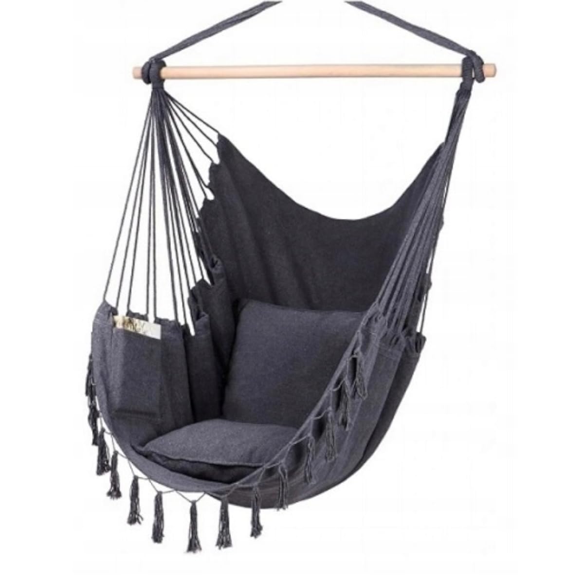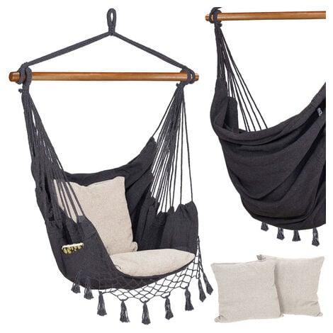 Design bohémien: elegante poltrona sospesa con trame decorative e nappe; il colore grigio alla moda si abbina a diverse composizioni Set confortevole - Viene fornito con due cuscini e una borsa per il trasporto; il supporto morbido lo rende comodo per sedersi e sdraiarsi poltrona sospesa giardino jardim esterno naturale bizzotto suspensa lusso esterni tonda poltrone legno armchair hangende luxe acciaio suspended struttura aço Appendila in soggiorno, sul balcone, nella cameretta dei bambini o su un ramo del giardino, ovunque tu voglia creare la tua zona di riposo. La robusta trave e le corde possono contenere fino a 150 kg, offrendo allo stesso tempo un leggero dondolo per favorire il rilassamento. Dettagli funzionali - Tasca integrata per piccoli oggetti; facile da montare e trasportare grazie alla borsa da viaggio Uso universale: ideale per soggiorno, giardino, balcone, terrazza o camera dei bambini; per uso interno ed esterno Scopri l'amaca brasiliana Campela - un'elegante poltrona sospesa in stile bohémien che aggiunge comfort e un'atmosfera speciale al tuo spazio. Con i due morbidi cuscini inclusi e l'ampia seduta, la poltrona offre comodità a bambini, adolescenti e adulti. È la soluzione perfetta per chi ama il relax, l'estetica e la praticità. Poltrona Oscillante Per Giardino Relaxdays Poltrona Sospesa, Sedia Appesa Per Interni E Esterni, Regge 150 Kg, Sedile In Cotone, Bambini E Adulti, Grigio, 111 X 100 X 7,5 Cm Poltrona Giardino