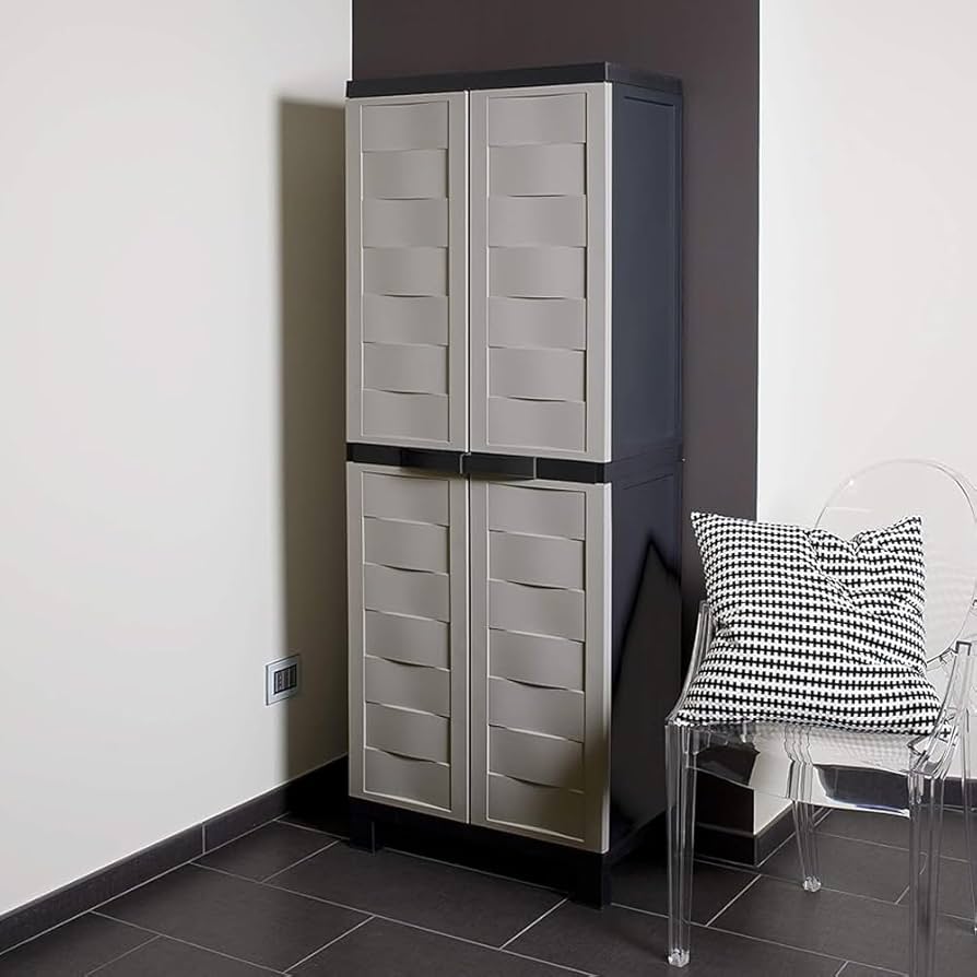 Perfetto per ogni ambiente Facile da montare, pulire e mantenere nel tempo La struttura leggera consente un assemblaggio rapido e intuitivo senza bisogno di attrezzi speciali. La predisposizione per chiusura con lucchetto (non incluso) offre una sicurezza aggiuntiva, proteggendo i tuoi oggetti da eventuali furti o danni. Questo armadio portascope consente di personalizzare lo spazio interno secondo le tue esigenze specifiche. La robustezza dei ripiani assicura una sistemazione sicura e stabile degli oggetti. Protezione e sicurezza Predisposizione per chiusura con lucchetto di sicurezza La predisposizione per lucchetto (non incluso) offre maggiore sicurezza, proteggendo il contenuto da furti o accessi indesiderati. Design robusto e funzionale per un uso quotidiano. Armadio Da Esterno Impermeabile Armadietto Basso Da Giardino, Armadio Da Esterno Con 3 Ante E 2 Ripiani Regolabili, Armadio In Plastica, 97 X 38 X 87 Cm, Nero : Amazon.it: Giardino E Giardinaggio Mobili Da Giardino Spazio interno flessibile Struttura robusta con ripiani regolabili e versatili Dotato di 4 ripiani regolabili, permette di ottimizzare lo spazio interno secondo le necessità. La qualità dei materiali utilizzati, come la plastica resistente ai raggi UV e alle intemperie, garantisce che l'armadio portascope Ambition Midi basso mantenga la sua integrità e il suo aspetto nel tempo, anche se esposto a condizioni climatiche avverse. L'armadio portascope Ambition è una soluzione pratica per organizzare i tuoi spazi con stile e funzionalità. I ripiani, ognuno in grado di supportare fino a 15 kg di peso uniformemente distribuito, sono progettati per offrire la massima versatilità e facilitare l'organizzazione di attrezzi e accessori di diverse dimensioni. Con dimensioni di 37 cm di profondità, 65 cm di larghezza e 173 cm di altezza, offre ampio spazio per riporre attrezzi, scope e altri oggetti. È adatto per essere collocato all’esterno? Sì, grazie alla plastica resistente ai raggi UV e alle intemperie, può essere posizionato in giardini, terrazze o garage senza subire danni. Grazie alla sua resistenza ai raggi UV e alle intemperie, è adatto sia per ambienti interni che esterni, garantendo durabilità e protezione degli oggetti riposti.
