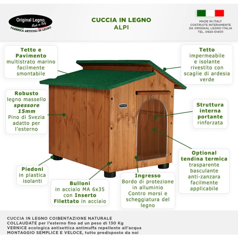 La cuccia pensilina e davanzale poggia su piedoni in materiale plastico che proteggono dall’umidità tutta la struttura. Cuccia Cane Esterno CUCCIA IN LEGNO Per Cani Da Esterno Con Porta A Lamelle Di Plastica EUR Cuccia Esterno Cane Questo è ecologico, antisettico, antimuffa, atossico, repellente all’acqua e resistente ai raggi U.V. . Oltretutto funge da barriera contro gli insetti. IN STOCK: Cuccia In Legno Per Cani da Esterno Rinforzata mod. Extra Large con Pensilina e Davanzale MADE IN ITALY B - Mod. 4XL Gigante Con Doppio Ingresso con 2 TENDINE OMAGGIO , 813_T al miglior prezzo. ... Alpi con Pensilina e Davanzale MADE IN ITAL Misure Cuccia Esterne CM L150 x P180 x 115H Montaggio Semplice e Veloce, tutto predisposto da Noi. Il legno è un isolante termico per eccellenza. Misure Cuccia Interne CM L130 x P110 x 115H La Tendine termiche creano un clima confortevole all’interno della cuccia, così da proteggere il cane sia in inverno che in estate. Entrambi gli ingressi sono dotati di bordature protettive in alluminio anti morso. Bulloni in acciaio MA 6×35 con Inserto Filettato metrico in acciaio. Il davanzale è costruito in robusto legno (del tipo marino) adatto per l’esterno; è un’ ideale zona relax per il vostro cane che gli garantisce un riposo su un piano isolato al riparo del freddo dall’umidità. Vengono collaudate una ad una prima di essere spedite al cliente. Montaggio Semplice e Veloce, tutto predisposto da Noi. DISPONIBILITA’ IMMEDIATA Misure Ingresso L38 x 64H Misura Cuccia e Davanzale esterne L150 x P190 x 115H