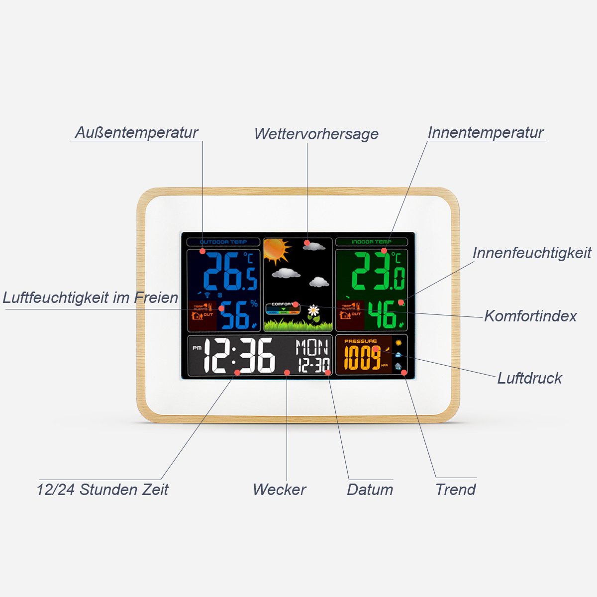 Stazione meteo compatibile: Green Blue GB532 è compatibile con le stazioni meteo Green Blue: GB151, GB520, GB521, GB522, GB523, GB526, GB540: Portata del trasmettitore fino a circa 60 m fuori strada. Il sensore aggiuntivo consente il monoraggio meteorologico in diversi luoghi allo stesso tempo. La portata del trasmettore è fino a 60 m in terreno aperto Sensore Umidità E Temperatura Sensore Esterno Per Stazione Meteorologica GB532 Adatto Per Stazioni Gb522 Sensore Di Umidità Umidità esterna Intervallo di misurazione: da 20% RH a 95% RH Classe di protezione: IPX4 Il sensore esterno è dotato di display LCD, sul quale è possibile leggere anche la temperatura e l'umidità attuali. Frequenza di trasmissione dati: 433 MHz - Portata wireless: max. 60m (spazio aperto) Il sensore aggiuntivo consente di osservare le condizioni meteorologiche in diverse posizioni contemporaneamente.