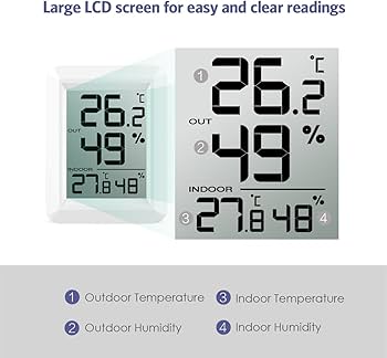 Intervallo di misurazione: Temperatura interna: 0-60 ℃ / 32-140 ℉. Precisione: ± 1 °C. Risoluzione: 0,1 °C. Il termometro igrometro digitale è un compagno di vita ideale per la tua famiglia. Se necessario, pulire con un panno morbido. Nota: ● Per evitare danni permanenti, si prega di osservare la polarità della batteria prima di inserire le batterie. Dimensioni LCD (lunghezza x larghezza): 5,2 x 4,1 cm. Trova una vasta selezione di Termometro digitale interno esterno a stazioni meteo per la casa a prezzi vantaggiosi su . Scegli la consegna gratis per riparmiare di più. Subito a casa e in tutta sicurezza con Temperatura esterna: -40 ℃ -60 ℃/-104 ° F-140 ° F. Precisione: ± 1 °C. Risoluzione: 0,1 °C. Umidità interna: 10% -99%. Ampiamente utilizzato per misurare la temperatura e l'umidità in case, uffici, laboratori, ecc. Il termometro ha un ampio raggio di trasmissione (30-100m/98-328ft) nell'area aperta, il segnale può essere ricevuto in tempo e rapidamente nel raggio di trasmissione. Trasmettitore termoigrometro: Dimensioni (L x P x A): 6,8 x 5,0 x 2,0 cm. Contenuto della confezione: 1 termometro digitale. 1 trasmettitore termoigrometro. Precisione: ± 5% (solo garantita tra 20% -90%). Risoluzione: 1%. 【Alta Precisione e Ggrande Schermo LCD】Grande schermo LCD per una visualizzazione facile e chiara. Richiede 2 batterie AAA (trasmettitore/ricevitore, non incluse). 【Facile da Usare】È facile cambiare l'unità di misura della temperatura in Celsius o Fahrenheit tramite il pulsante sul retro. ● Non pulire parti del prodotto con benzene, diluente o altri prodotti chimici. Durata della batteria: almeno 24 mesi per la stazione base. Almeno 24 mesi per il sensore del termometro a distanza. Se avete domande, si prega di fornire un feedback tempestivo, faremo del nostro meglio per rendere le cose giuste per voi. Temperatura interna (0-60 °C / 32-140 ° F) / temperatura esterna (da -40 °C a 60 °C / -40 ° F-140 ° F), umidità (10% -99%) e precisione possono raggiungere ± 1 °C / ± 5%. 【Facile Installazione】Progettato con una staffa da parete e un supporto retrattile sul retro, facile da montare sulla parete o semplicemente da posizionare sul tavolo. Amazon Termometro Ambiente Interno OQIMAX Termometro Interno Esterno, Termometro Igrometro Digitale Oregon Scientific Sensore Esterno