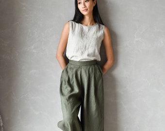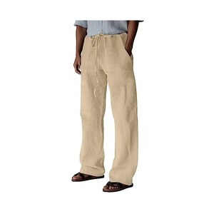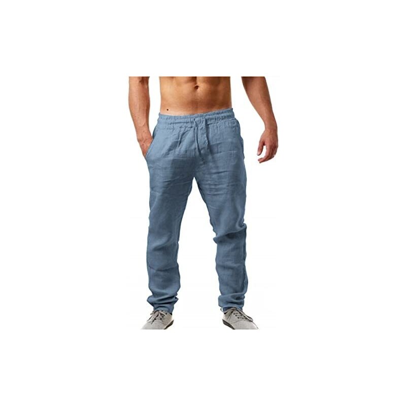 Qoier Queer Pantaloni Lunghi Estivi Da Donna, Cotone E Lino In Pizzo Tinta Unita, Elastico In