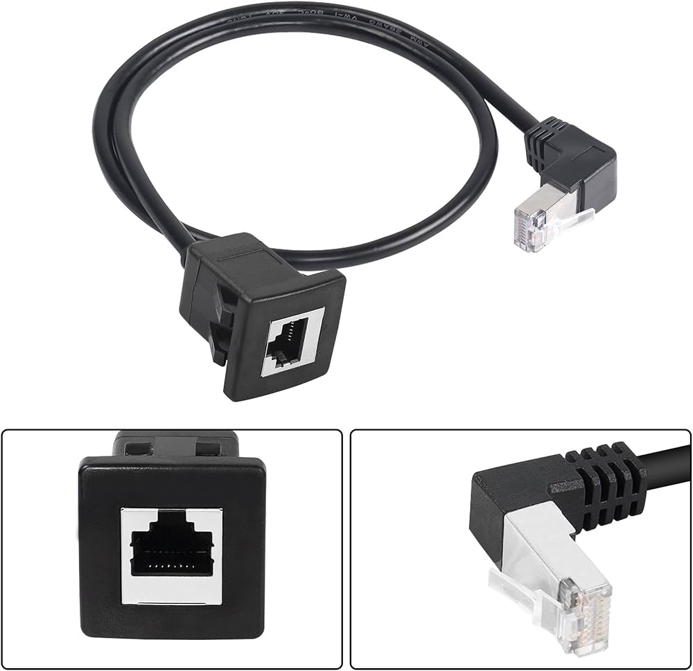 Cavo di prolunga per montaggio A pannello da 90 gradi RJ45 A maschio A femmina, supporto Ethernet Cat 5e/Cat 6-10 pollici (verso l'alto 【Ampia applicazione】L'adattatore per cavo di prolunga Cat5e per presa con RJ45 è comunemente utilizzato in ambienti di rete Ethernet, Gigabit Ethernet, che possono essere utilizzati per collegare dispositivi di rete come desktop, laptop, router, TV box, stampanti, ecc. 【Design versatile】Il cavo di prolunga RJ45 femmina con viti può essere fissato sul pannello, fornendo 4 angoli da scegliere (su/giù/sinistra/destra); il design di angoli diversi può essere utilizzato per le diverse esigenze dello spazio ristretto, come TV, chassis di computer, angoli, cablaggio a parete e così via. YACSEJAO Cat5e/Cat5 Ethernet RJ45 maschio a femaleinstallation vite bordo rete Patch Cords Specifiche: Connettore 1: Spina RJ45 maschio ad angolo retto Connettore 2: RJ45 femmina jack per montaggio a pannello Materiale: plastica + rame Lunghezza del cavo: 60cm/23,6in Velocità di trasmissione: fino a 1000Mbps Calibro del conduttore: 26 AWG (diametro del filo 0,4 mm) Larghezza di banda di trasmissione: 100Mhz Caratteristiche: 1. Il design a 90 gradi può facilmente far fronte a diversi spazi ristretti, risparmiando così spazio. 2. Il pannello femmina RJ45 con viti può essere fissato, non è facile da perdere; 3. Facile da estendere il cavo di rete, risolve il problema del cavo non abbastanza lungo. 4. Alta velocità di trasmissione, trasmissione del segnale stabile Pacchetto incluso: 1 x cavo di prolunga RJ45 con pannello a vite Nota: si prega di confermare la direzione dell'angolo del connettore RJ45 a 90 gradi di cui si ha bisogno prima dell'acquisto per evitare di effettuare un ordine errato. Supportando una larghezza di banda di 100MHz, è in grado di fornire prestazioni di trasmissione stabili. Lan Presa GELRHONR Cavo Di Prolunga Ethernet, RJ45 Cavo Patch Di Rete Cavo Da Rj45 Maschio 【Compatibilità】La velocità di trasmissione Cat5e fino a 1000 Mbps soddisfa la domanda di Gigabit Ethernet ed è compatibile con i cavi Cat 5 Ethernet.