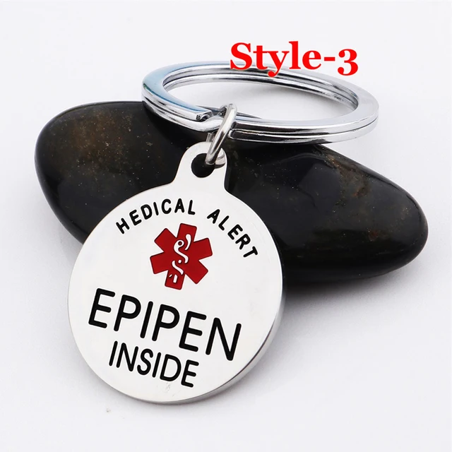 BreezyPacks EpiPen - Targhetta Per Borsa (2 Unità) | Etichetta Medica Per Borsa | Etichette In Metallo Resistenti Su Entrambi I Lati | Diametro 3 Cm | Si Aggancia A Qualsiasi Cerniera