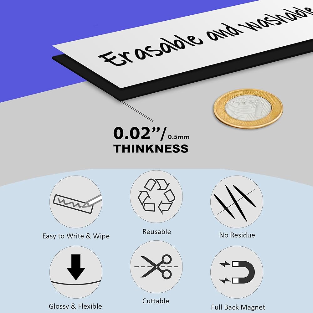 – Scrivibile e facile da tagliare con le forbici. Etichette Magnetiche Per Armadi Etichette Magnetiche Scrivibili E Cancellabili - Formato 4 Cm X 8 Cm - Colore Bianco - Materiale Etichette Magnetiche Per Scaffali - Materiale ecologico, non tossico e non appiccicoso. - Misure disponibili: 1 pollice e 2 pollici di larghezza, incluse nei colori bianco, rosso, verde, blu e giallo. - Confezionato avvolto. Realizzate in polietilene bianco opaco con adesivo permanente. Resistono da -7°C a +60°C e possono essere applicate su vetro, metallo e plastica. Stampabili con Laser/Inkjet/Fotocopiatrici/ digitali a toner secco e liquido. Etichetta in cartoncino con for CARATTERISTICHE DEL PRODOTTO: Realizzate con una miscela di polvere magnetica e gomma NBR, che rende le strisce flessibili, resistenti alle intemperie, a prova di arricciatura, riutilizzabili e pulite. Questi adesivi sono ancora facili da scrivere e cancellare anche dopo mesi, etichette davvero durevoli; Sono articoli preziosi e altamente utilizzabili che possono essere utilizzati a casa, in ufficio, in negozio e in magazzino. CARATTERISTICHE: - Adatto per organizzare l'area di lavoro, magazzino, magazzino, ufficio e scuola. La superficie luminosa offre un contrasto eccellente per una scrittura vivida e garantisce che le etichette siano chiaramente visibili e leggibili anche a distanza. Vinile lavabile e lavabile a secco: la parte superiore è realizzata con uno strato di vinile di alta qualità con un trattamento lucido molto speciale che resiste ai graffi ma è facile da scrivere e pulire con un pennarello. - Temperature comprese tra -15 e 160F gradi. – Riutilizzabile e rimovibile. – Nessun magnete potente per trattenere gli oggetti. – Installazione semplice e gestione semplice. - Resistente al crespo con spessore ottimale. Apprezziamo molto il tuo tempo prezioso nel condividere la tua opinione sui nostri prodotti e aiutarci a migliorare. Queste etichette forniscono un modo chiaro ed efficace per classificare e identificare gli articoli, massimizzando l'efficienza e la produttività. APPLICAZIONE: la striscia magnetica cancellabile a secco LLPT è sufficientemente robusta per uso industriale e commerciale.