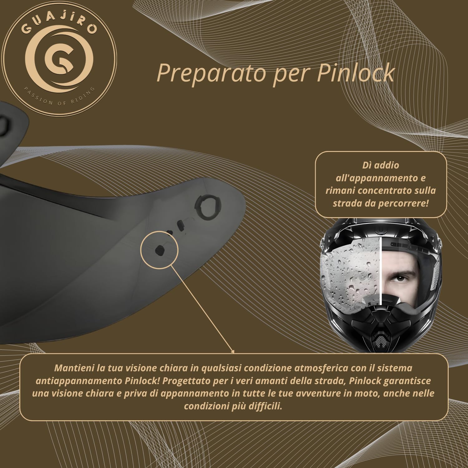 Guajiro - Visiera compatibile con Scorpion EXO | R1 Evo Air | R1 Carbon Aria | 1400 Evo Air | 1400 Carbonio Aria | 520 Evo Air | 391| Schermo in policarbonato predisposto per Pinlock (Nero Hai domande o hai bisogno di aiuto? Non esitate a contattarci per un'assistenza personalizzata. La nostra vasta gamma di colori esclusivi e design vivaci ti consente di esprimere la tua personalità godendo di finiture di alta qualità che si distingueranno sulla strada. 🛡️ 𝗣𝗿𝗼𝘁𝗲𝘇𝗶𝗼𝗻𝗲 𝗽𝗲𝗿𝗳𝗲𝘁𝘁𝗮: goditi la tripla protezione per i tuoi occhi con la nostra visiera Guajiro: protezione UV, resistenza ai graffi e tecnologia antiappannamento garantiscono una visione chiara e sicura in ogni momento. 🔧 𝗜𝗻𝘀𝘁𝗮𝗹𝗹𝗮𝘇𝗶𝗼𝗻𝗲 𝘀𝗲𝗺𝗽𝗹𝗶𝗰𝗲: includiamo istruzioni intuitive per l'installazione rapida e semplice della visiera sul casco. Visiera Agv K1s Scorpion Scorpion Exo-R1 Evo Carbon Air MG Casque Intégral Casco Scorpion Viaggia con completa tranquillità e sicurezza in ogni viaggio.