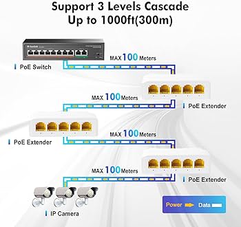 Reolink Poe MokerLink 5 Port Gigabit PoE Extender, IEEE 802.3 Af/at/bt 90W PoE Switch Poe MokerLink Extender PoE Gigabit a 5 porte, IEEE 802.3 af/at/bt 90 W PoE, 10/100/1000 Mbps, 1 PoE in 4 PoE Out, da parete e switch passthrough POE con montaggio su guida DIN Buy MokerLink 5 Port Gigabit PoE Extender, IEEE 802.3 af/at/bt 90W PoE Repeater, 10/100/1000Mbps, 1 PoE in 4 PoE Out, Wall & Din Rail Mount POE Passthrough Switch online on at best prices. Fast and free shipping free returns cash on delivery available on eligible purchase 5 porte Gigabit PoE: 1 PoE In, 4 PoE Out, 10/100/1000Mbps di velocità. Installazione semplice: non è necessario alcun adattatore di alimentazione aggiuntivo, alimentazione tramite rete POE. Ampiamente usato: supporta la modalità Vlan a una chiave, supporta 3 livelli a cascata, può collegare POE AP, fotocamera, telefono e altri dispositivi POE, aumentare la copertura POE a basso costo Connettore PoE: Ingresso: 1/2 (+), 3/6 (-), 4/5(+), 7/8(-); Uscita 4: 1/2 (+), 3/6 (-), 4/5(+), 7/8(-); Uscita 3-5: 1/2 (+), 3/6 (-). Distanza di trasmissione POE 100 metri. IEEE 802.3 af/at/bt: supporta questo standard PoE, porta di ingresso 1 IEEE802.3bt Max 90W, porta di uscita 2 IEEE802.3bt Max 60W, porta di uscita 3-5 IEEE802.3at Max 30W.
