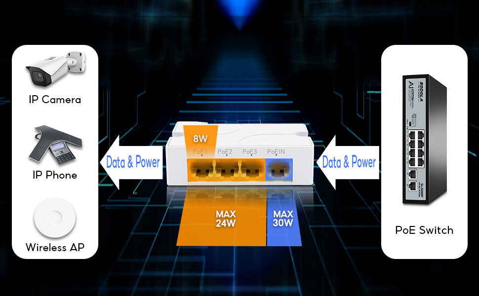 MokerLink 5 Port Gigabit PoE Extender, IEEE 802.3 Af/at/bt 90W PoE